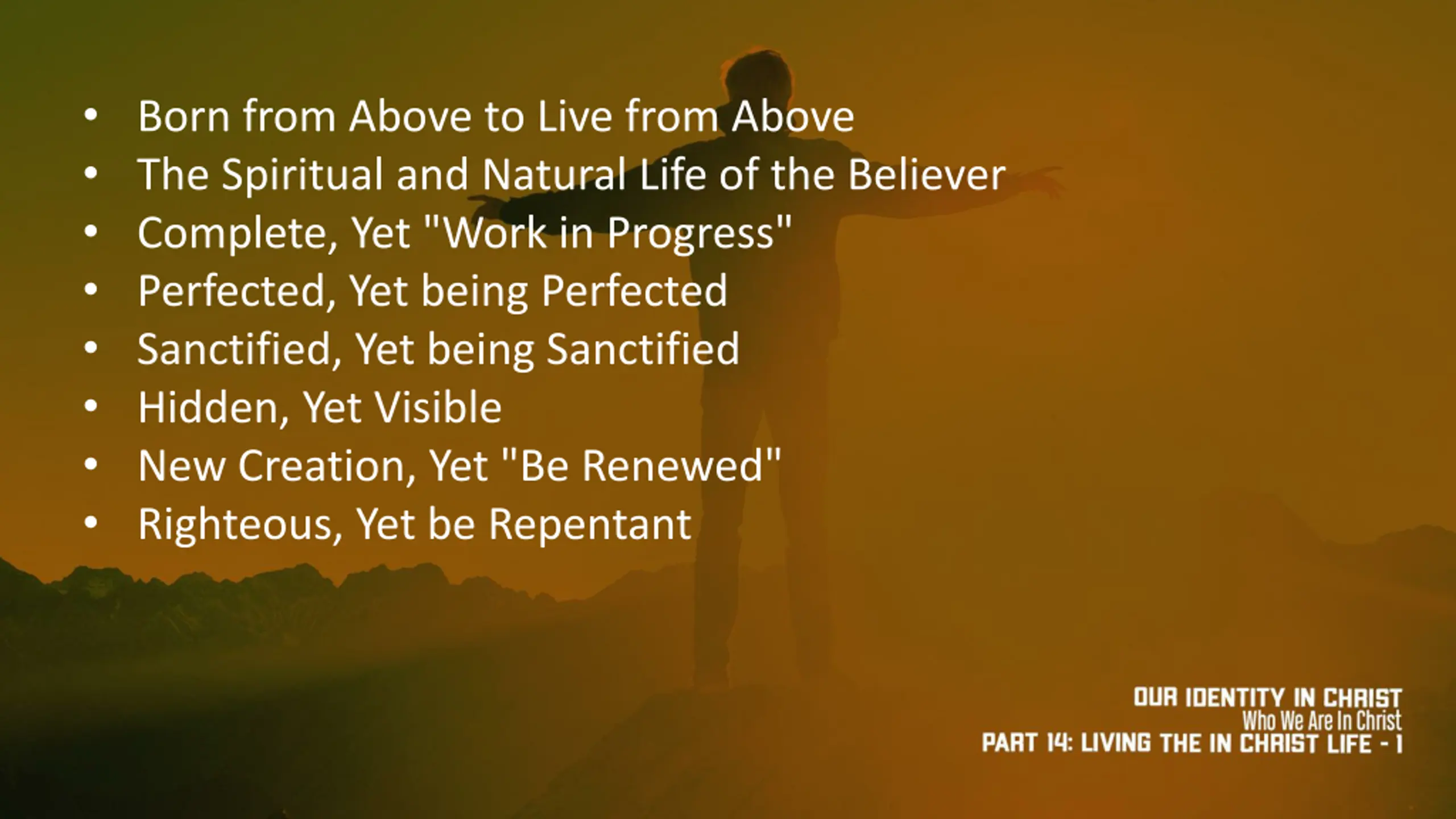 Born from Above to Live from Above The Spiritual and Natural Life of the Believer Complete, Yet "Work in Progress" Perfected, Yet being Perfected Sanctified, Yet being Sanctified Hidden, Yet Visible New Creation, Yet "Be Renewed" Righteous, Yet be Repentant