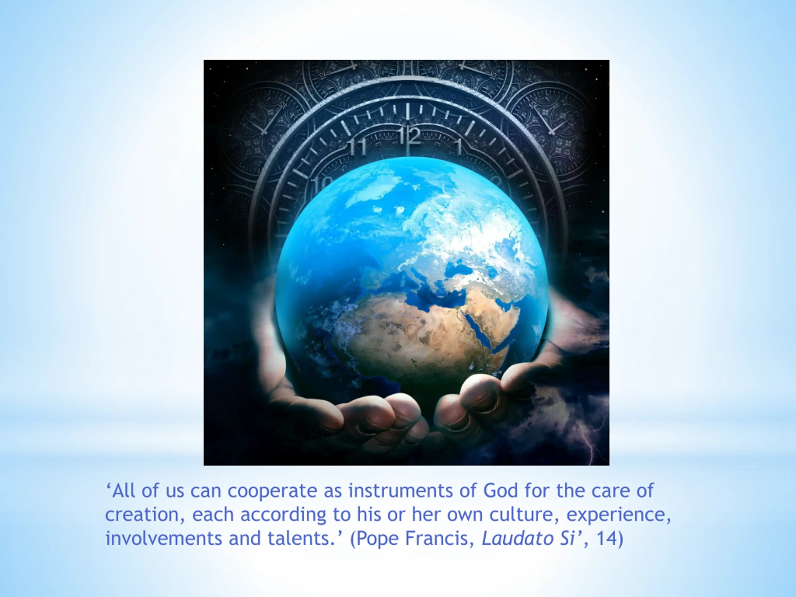 All of us can cooperate as instruments of God for the care of creation, each according to his or her own culture, experience, involvements and talents. (Pope Francis, Laudato Si , 14)