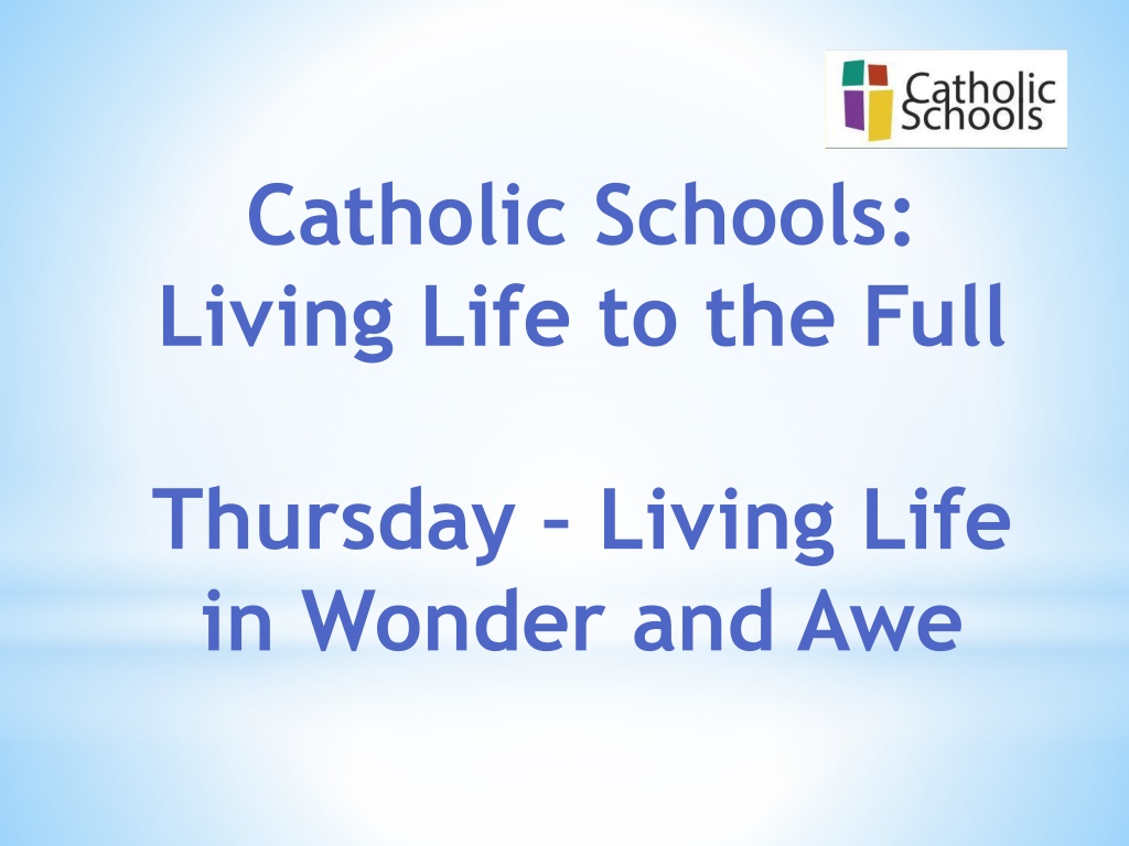 Catholic Schools: Living Life to the Full Thursday Living Life in Wonder and Awe