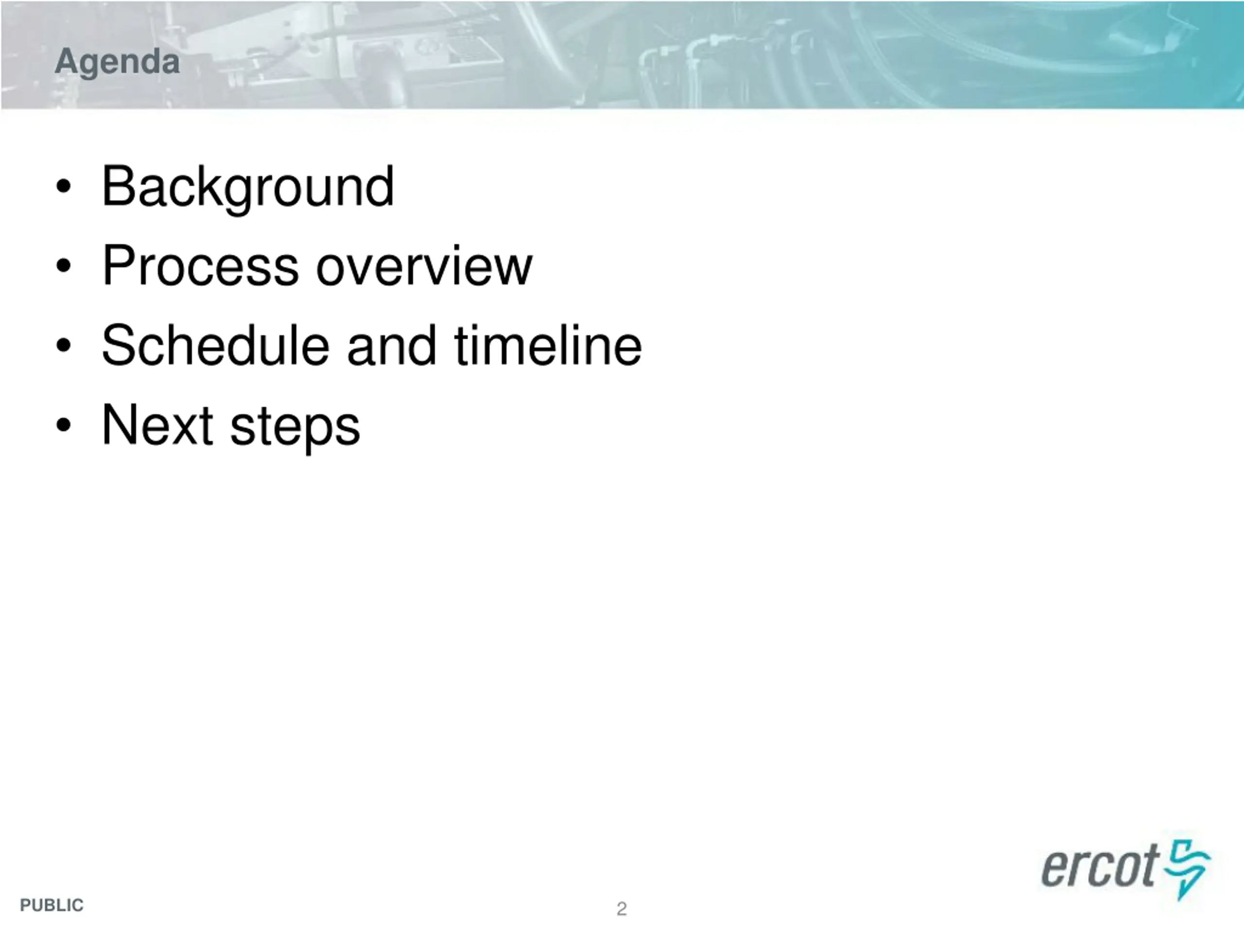 Agenda Background Process overview Schedule and timeline Next steps PUBLIC 2