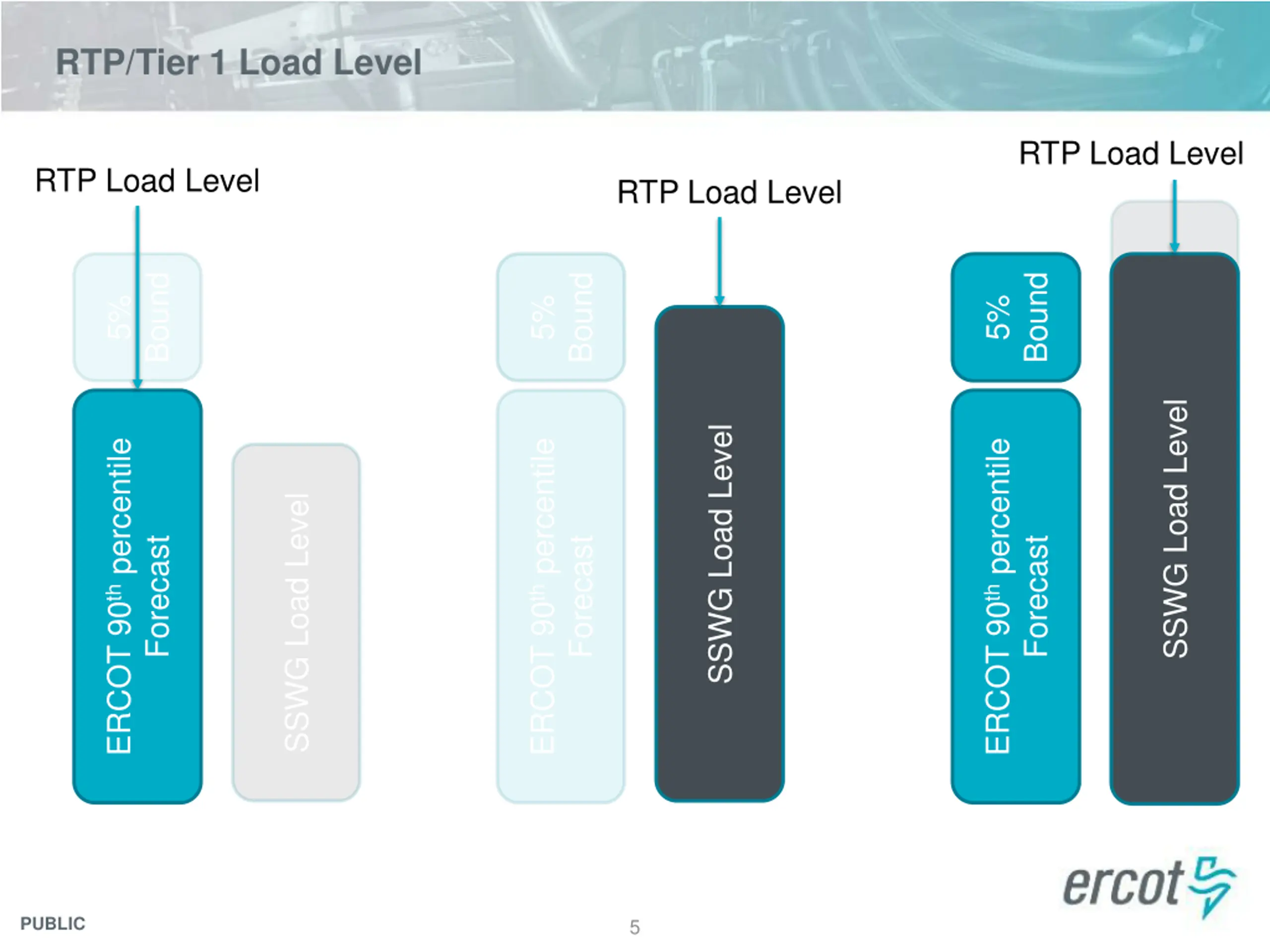 RTP/Tier 1 Load Level RTP Load Level RTP Load Level RTP Load Level Bound Bound Bound 5% 5% 5% SSWG Load Level SSWG Load Level SSWG Load Level ERCOT 90th percentile ERCOT 90th percentile ERCOT 90th percentile SSWG Load Level Forecast Forecast Forecast PUBLIC 5