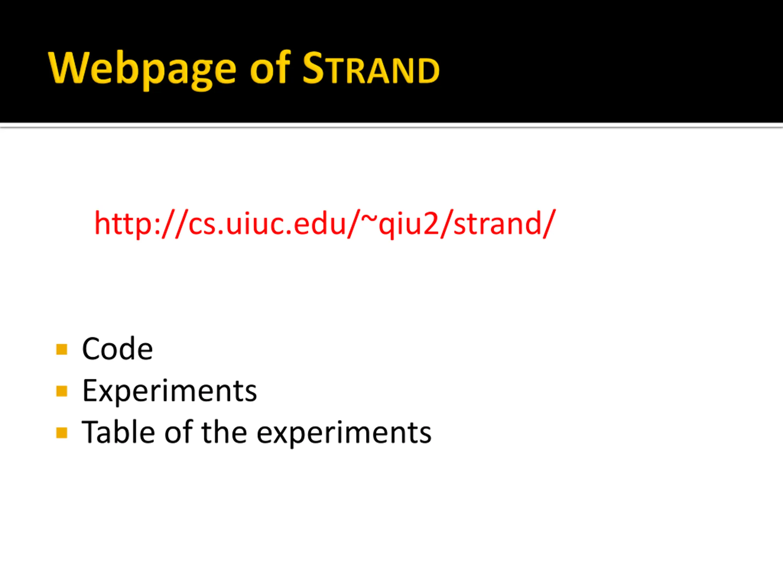 http://cs.uiuc.edu/~qiu2/strand/ Code Experiments Table of the experiments