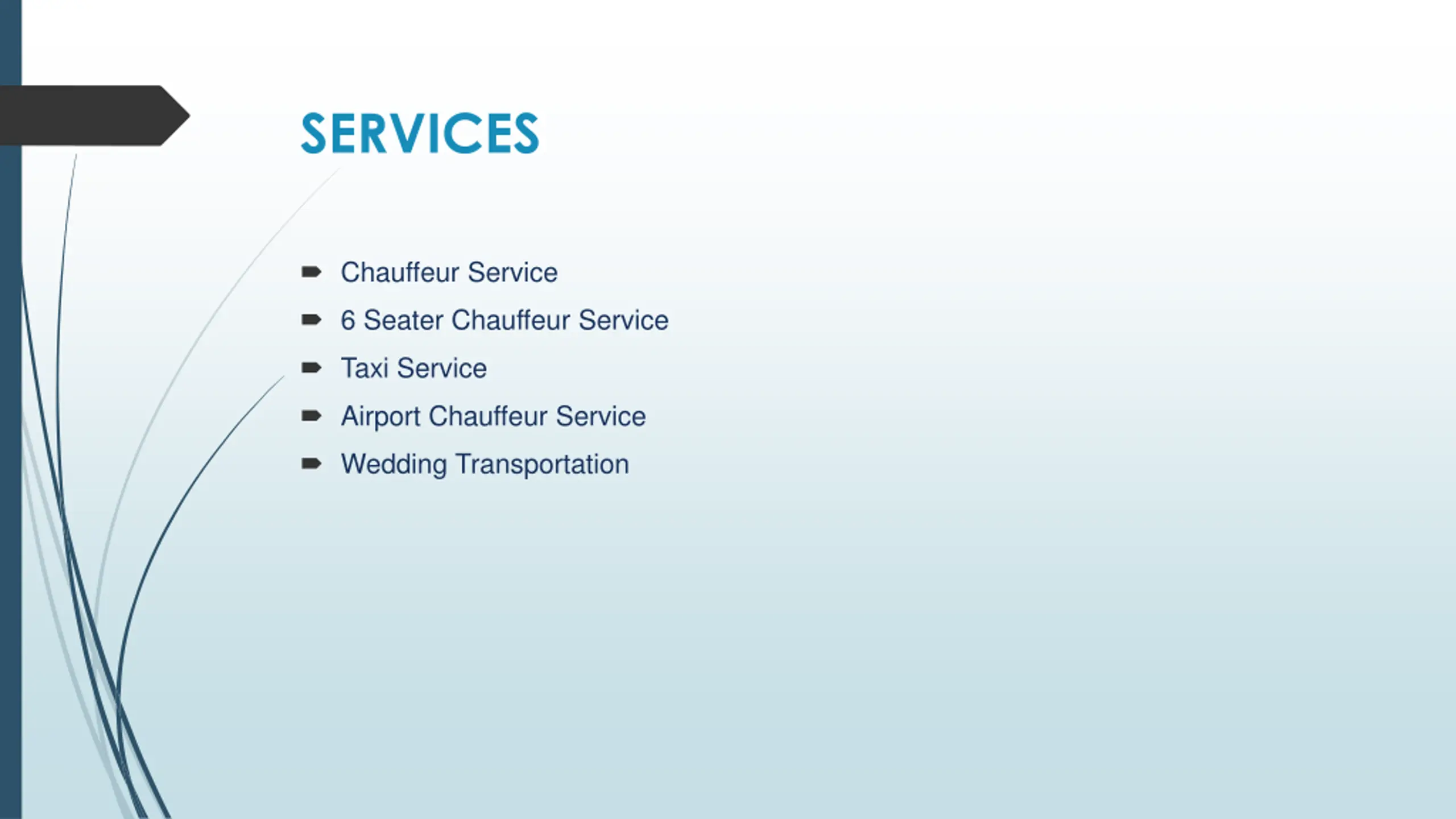 SERVICES Chauffeur Service 6 Seater Chauffeur Service Taxi Service Airport Chauffeur Service Wedding Transportation