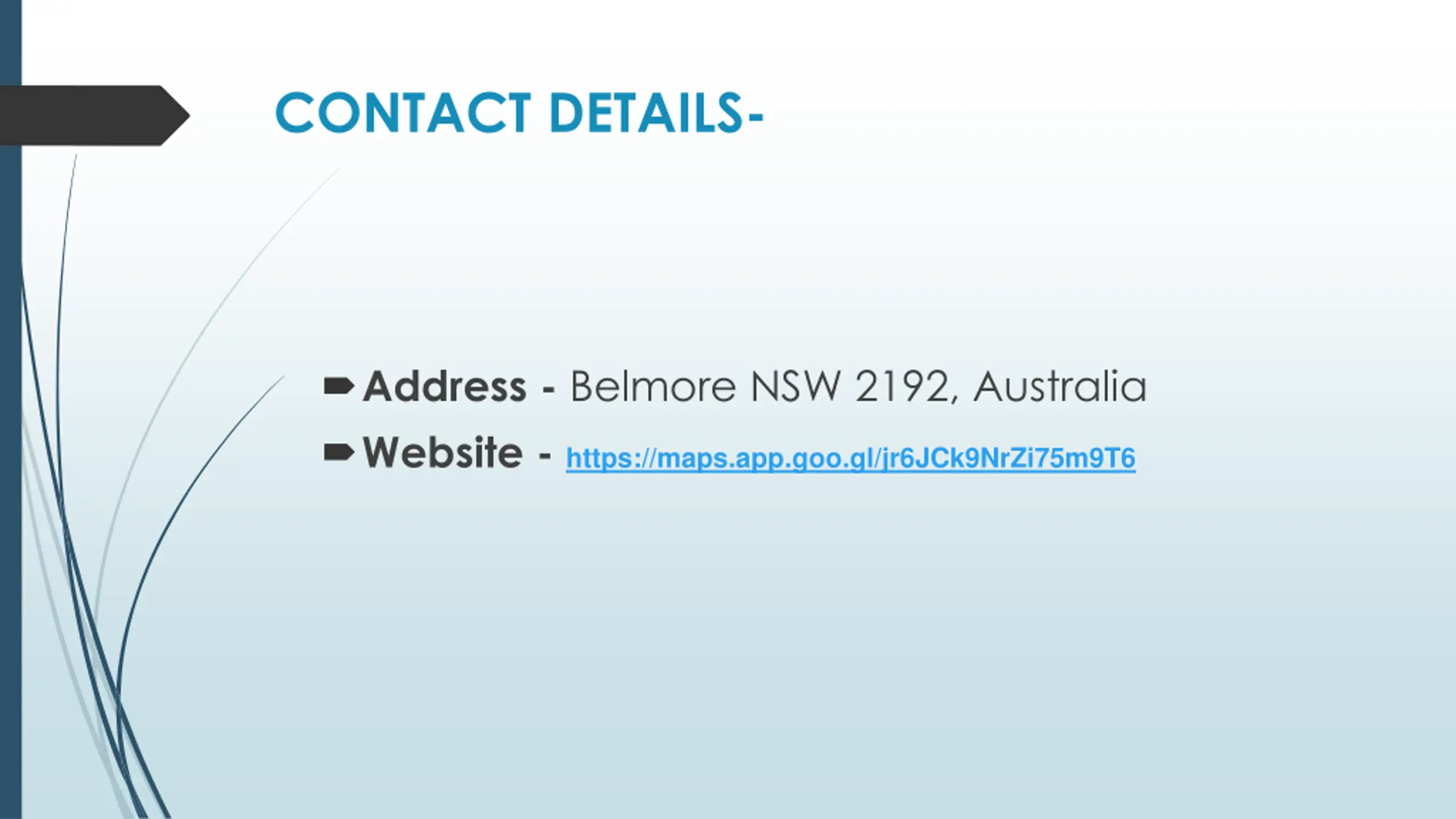 CONTACT DETAILS- Address - Belmore NSW 2192, Australia Website - https://maps.app.goo.gl/jr6JCk9NrZi75m9T6