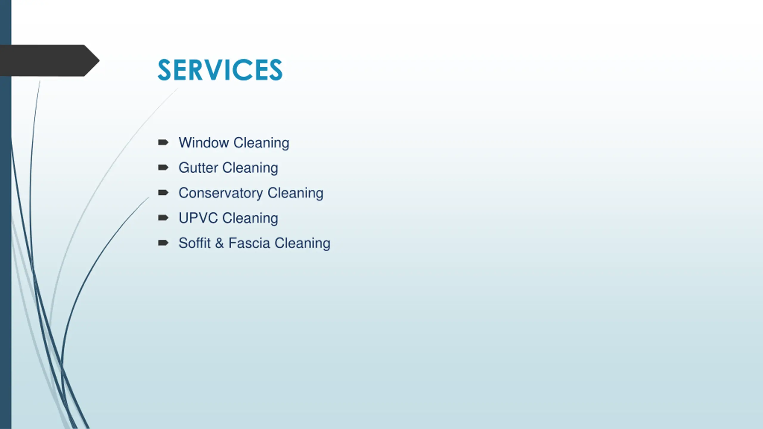 SERVICES Window Cleaning Gutter Cleaning Conservatory Cleaning UPVC Cleaning Soffit & Fascia Cleaning