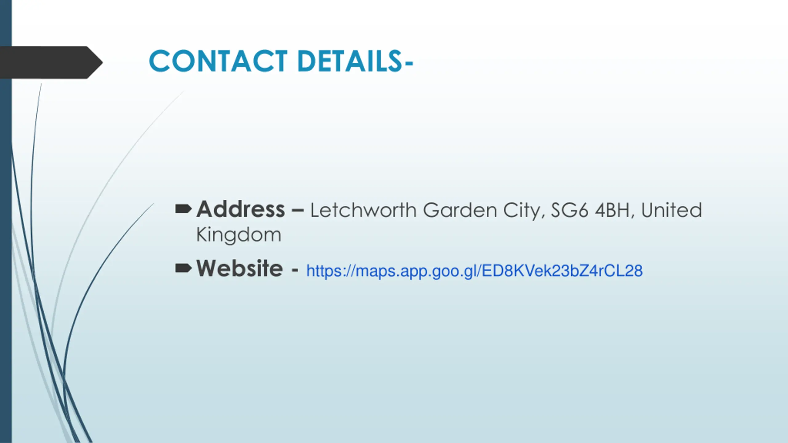 CONTACT DETAILS- Address Letchworth Garden City, SG6 4BH, United Kingdom Website - https://maps.app.goo.gl/ED8KVek23bZ4rCL28