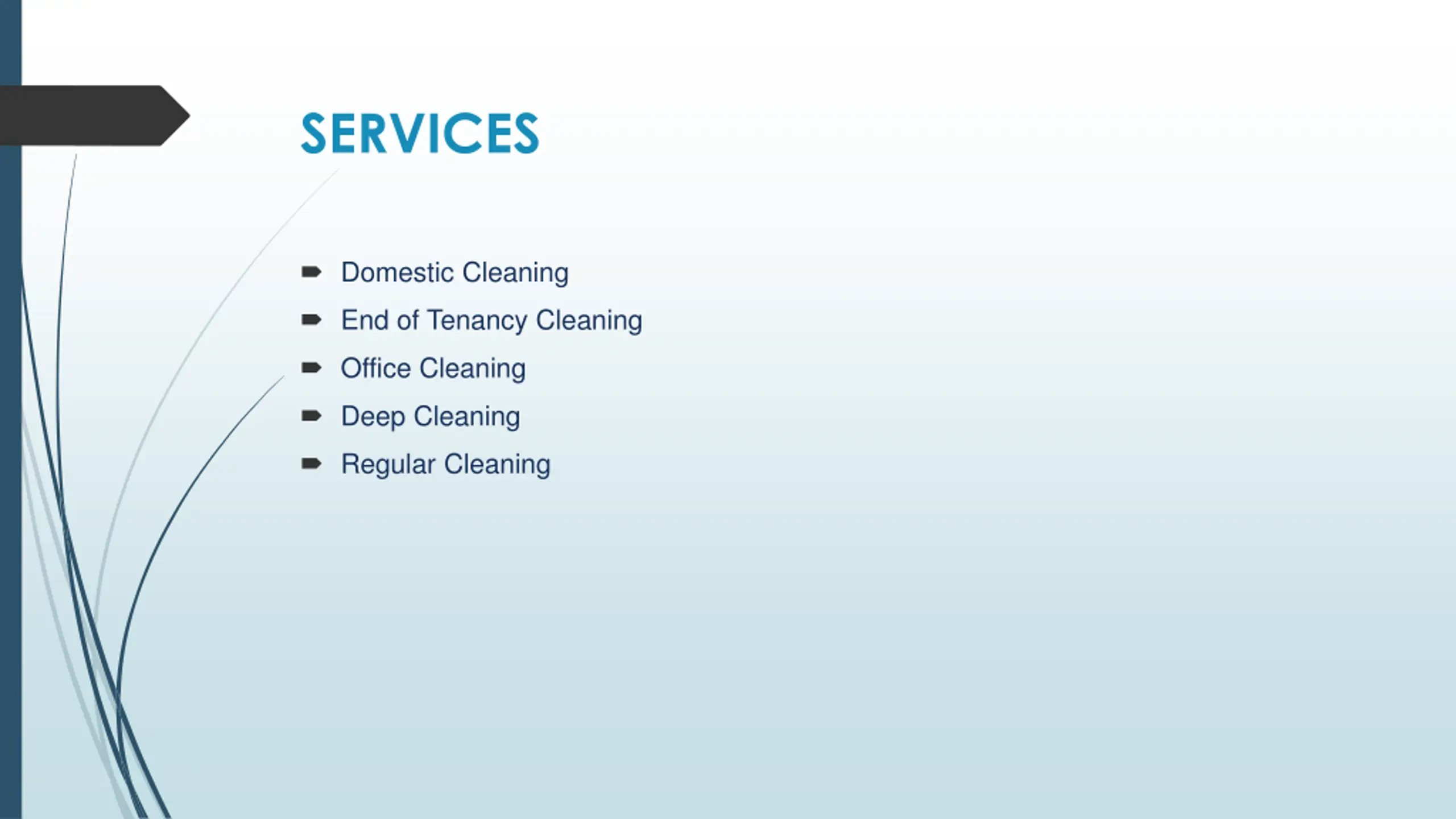 SERVICES Domestic Cleaning End of Tenancy Cleaning Office Cleaning Deep Cleaning Regular Cleaning