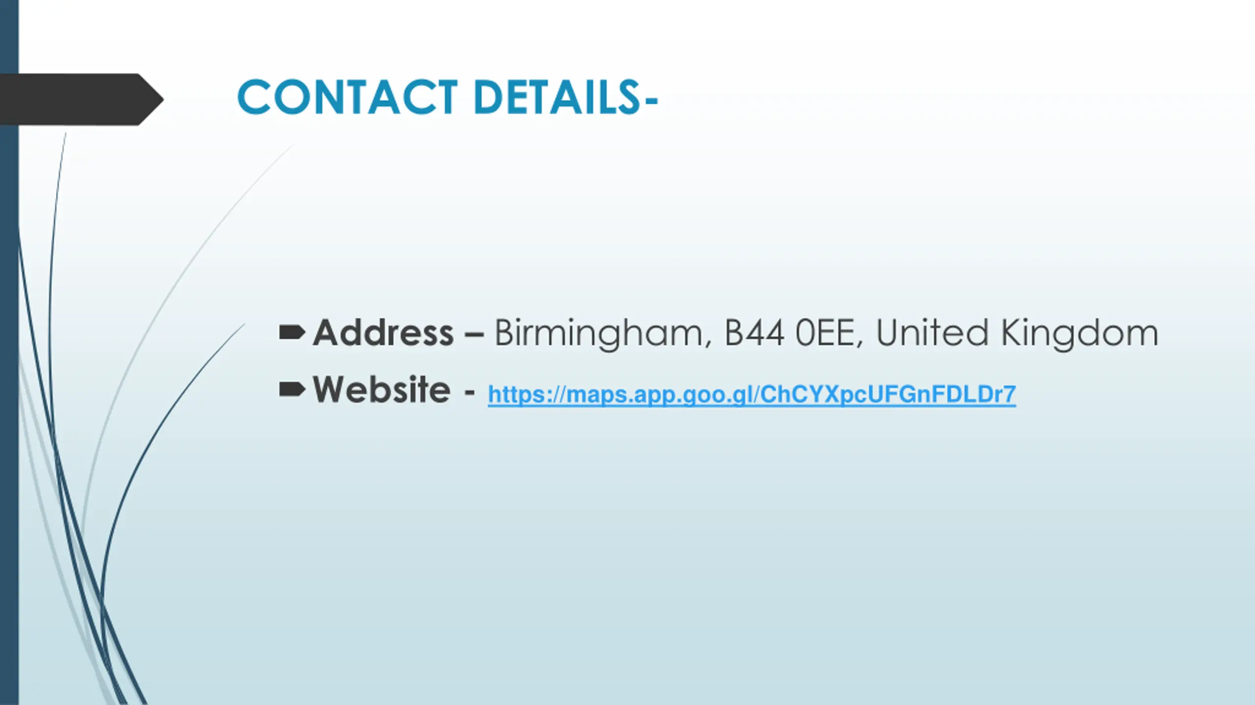CONTACT DETAILS- Address Birmingham, B44 0EE, United Kingdom Website - https://maps.app.goo.gl/ChCYXpcUFGnFDLDr7