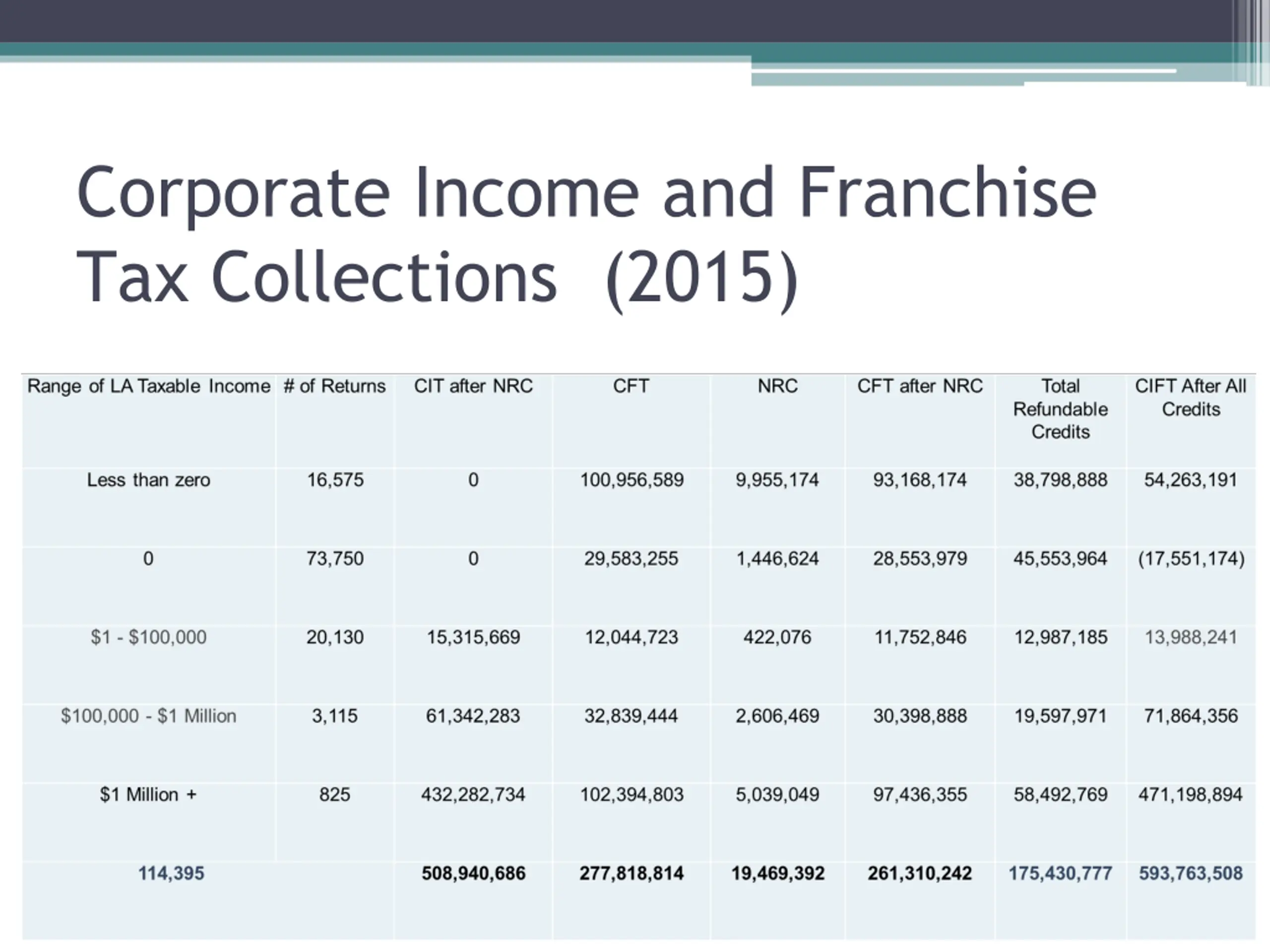 Corporate Income and Franchise Tax Collections (2011 2015)