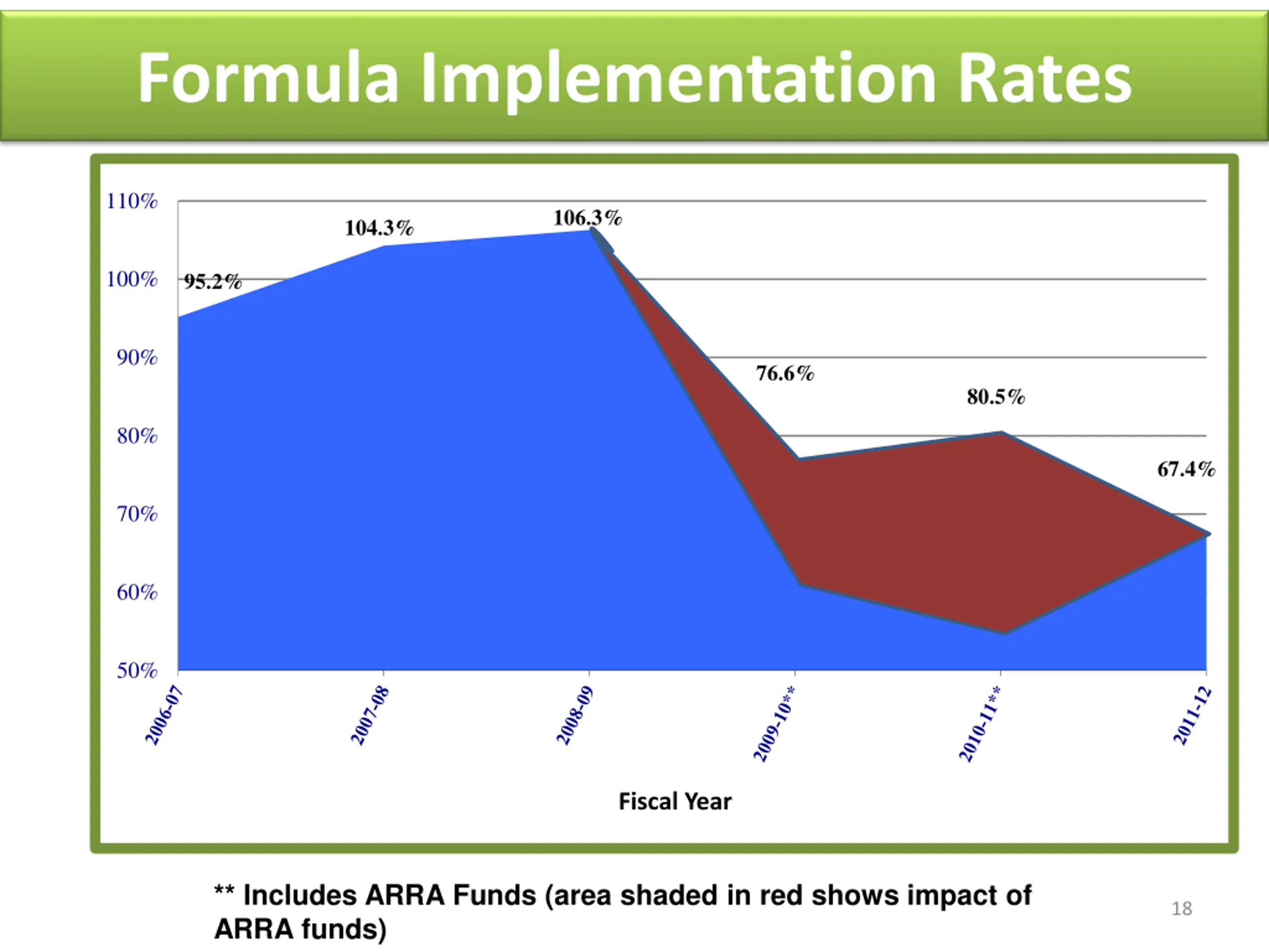 Formula Implementation Rates 110% 106.3% 104.3% 100% 95.2% 90% 76.6% 80.5% 80% 67.4% 70% 60% 50% Fiscal Year ** Includes ARRA Funds (area shaded in red shows impact of ARRA funds) 18