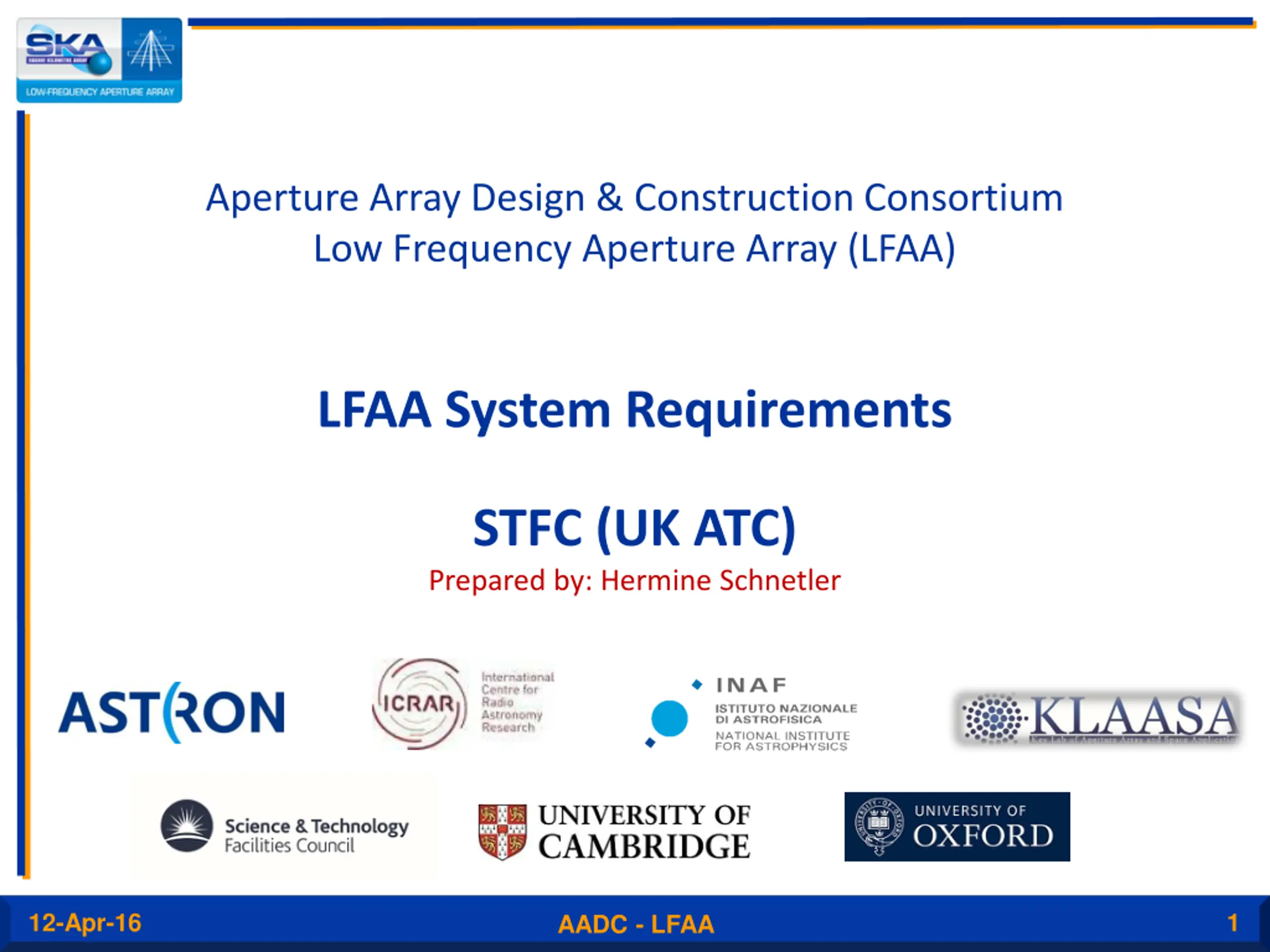 Aperture Array Design & Construction Consortium Low Frequency Aperture Array (LFAA) LFAA System Requirements STFC (UK ATC) Prepared by: Hermine Schnetler 12-Apr-16 1 AADC - LFAA