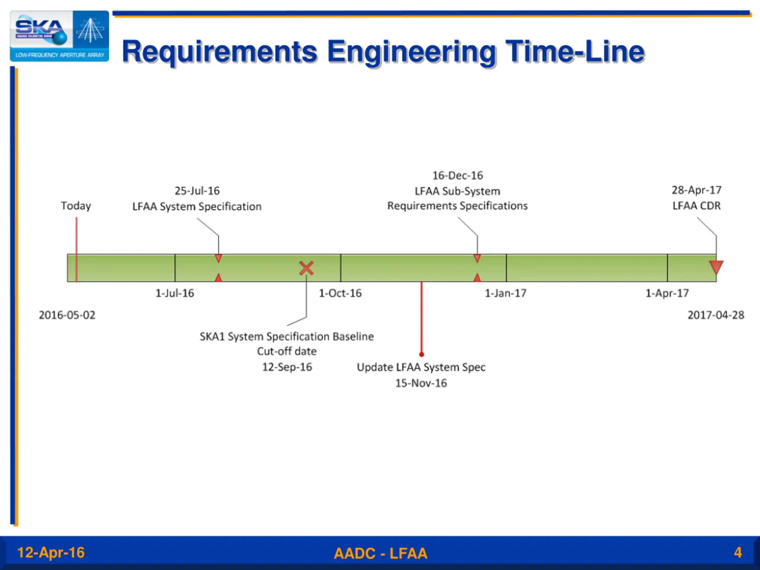 Requirements Engineering Time-Line 12-Apr-16 4 AADC - LFAA