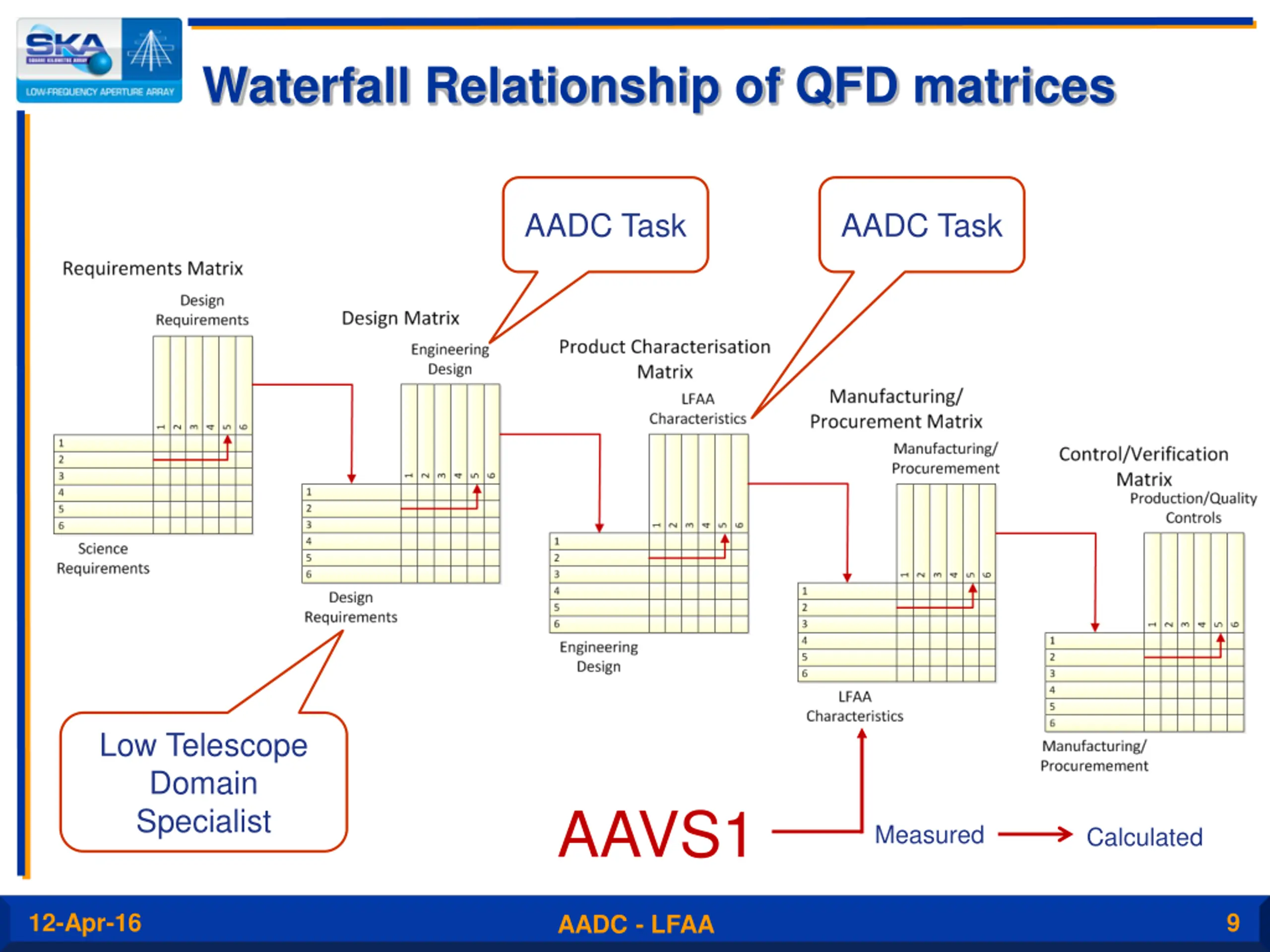 Waterfall Relationship of QFD matrices AADC Task AADC Task Low Telescope Domain Specialist AAVS1 Measured Calculated 12-Apr-16 9 AADC - LFAA