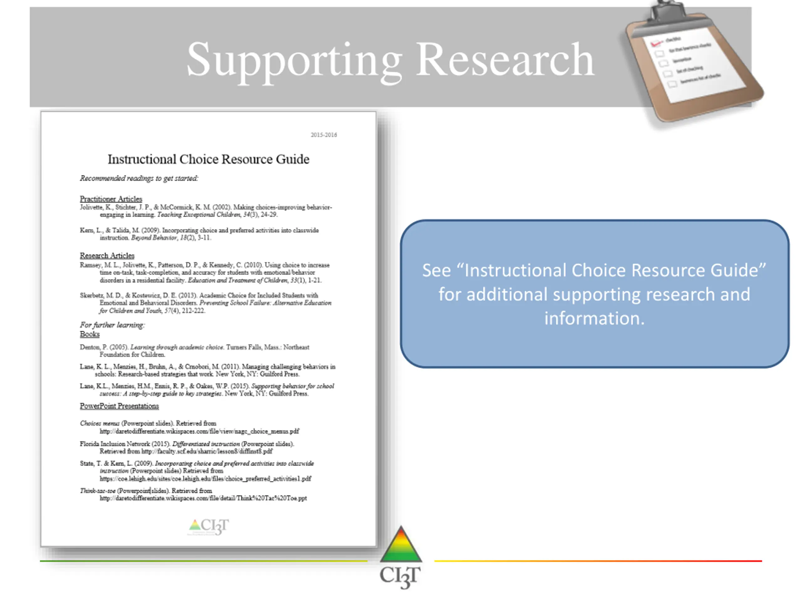 Supporting Research See Instructional Choice Resource Guide for additional supporting research and information.