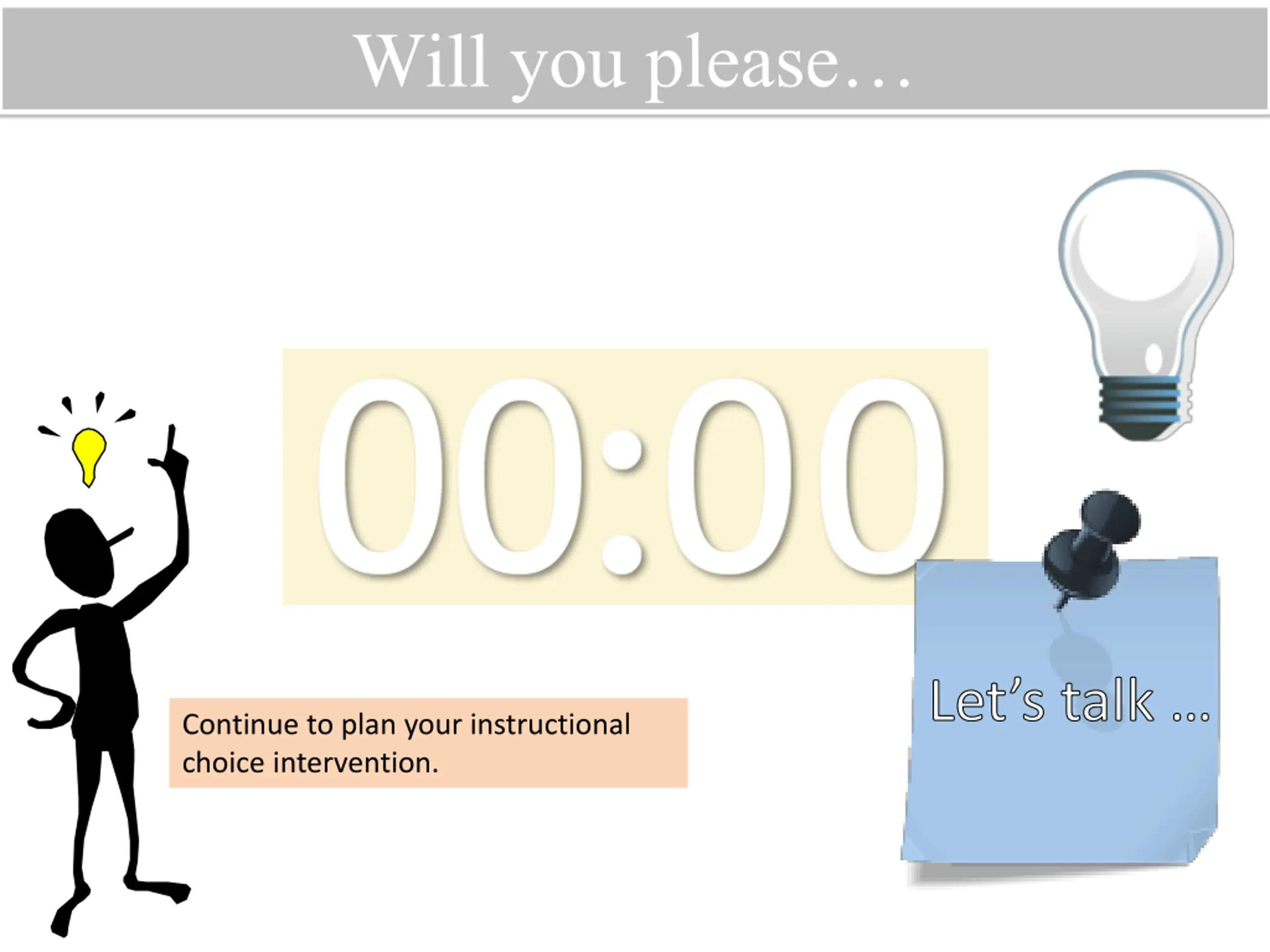 Will you please Let s talk Continue to plan your instructional choice intervention.