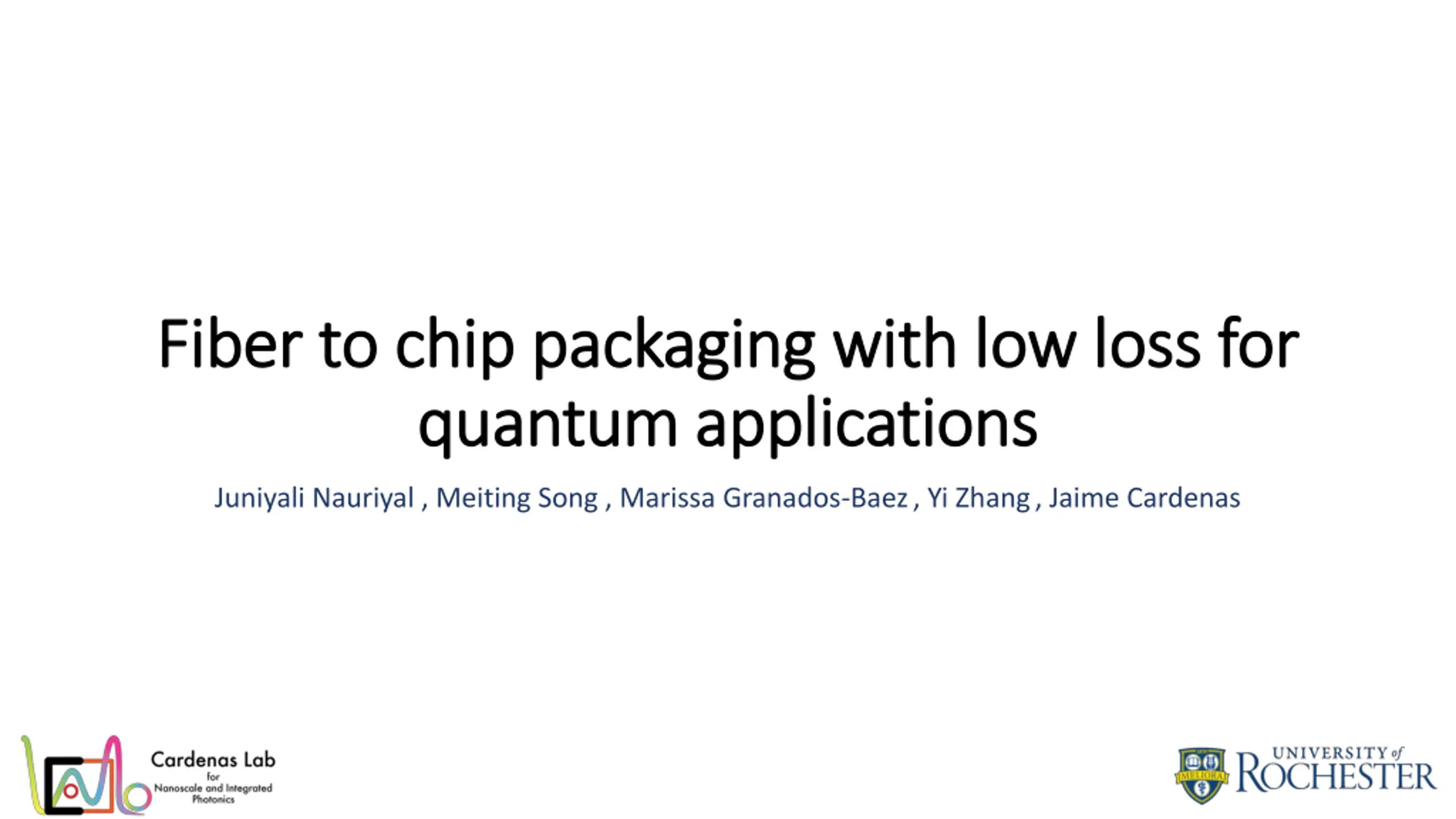Fiber to chip packaging with low loss for Fiber to chip packaging with low loss for quantum applications quantum applications Juniyali Nauriyal , Meiting Song , Marissa Granados-Baez, Yi Zhang, Jaime Cardenas