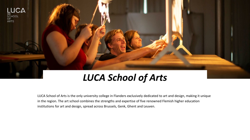 LUCA School of Arts LUCA School of Arts is the only university college in Flanders exclusively dedicated to art and design, making it unique in the region. The art school combines the strengths and expertise of five renowned Flemish higher education institutions for art and design, spread across Brussels, Genk, Ghent and Leuven.