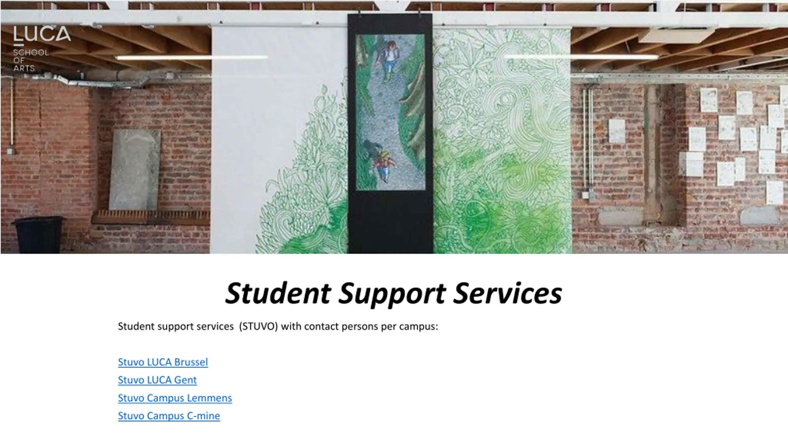 Student Support Services Student support services (STUVO) with contact persons per campus: Stuvo LUCA Brussel Stuvo LUCA Gent Stuvo Campus Lemmens Stuvo Campus C-mine