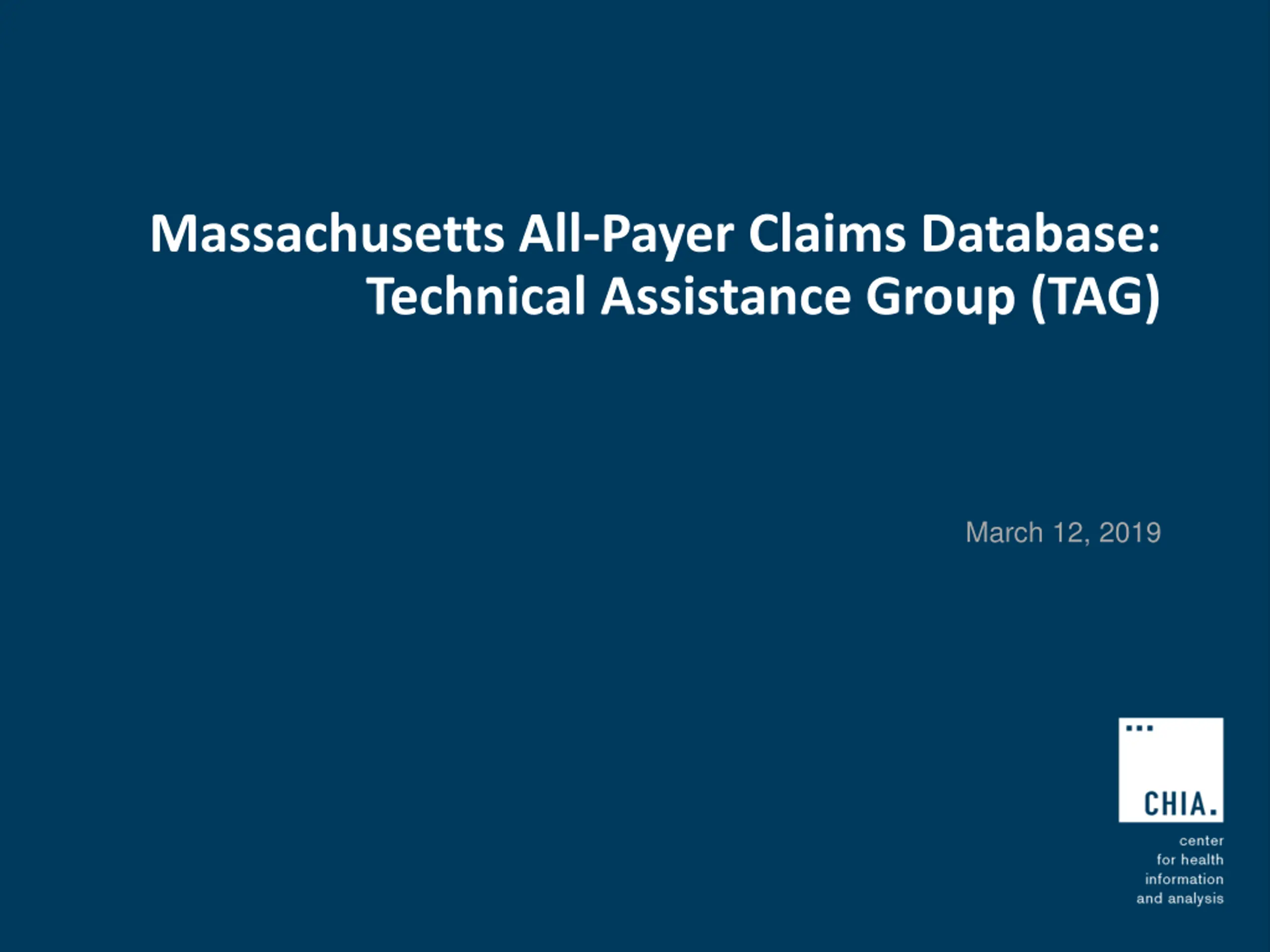 Massachusetts All-Payer Claims Database: Technical Assistance Group (TAG) March 12, 2019