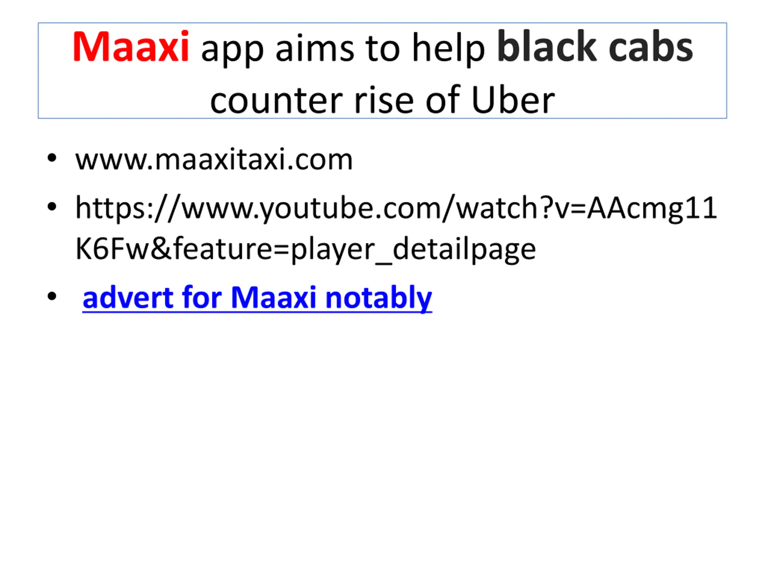 Maaxi app aims to help black cabs counter rise of Uber www.maaxitaxi.com https://www.youtube.com/watch?v=AAcmg11 K6Fw&feature=player_detailpage advert for Maaxi notably