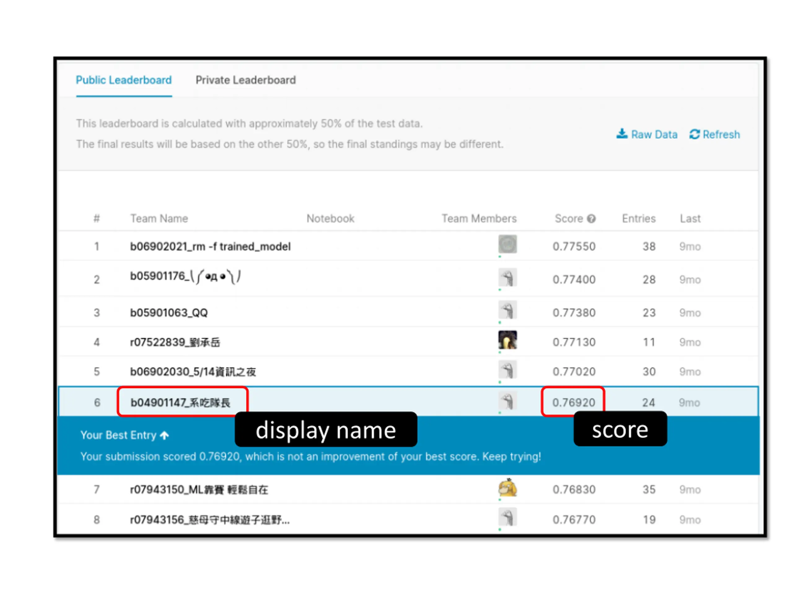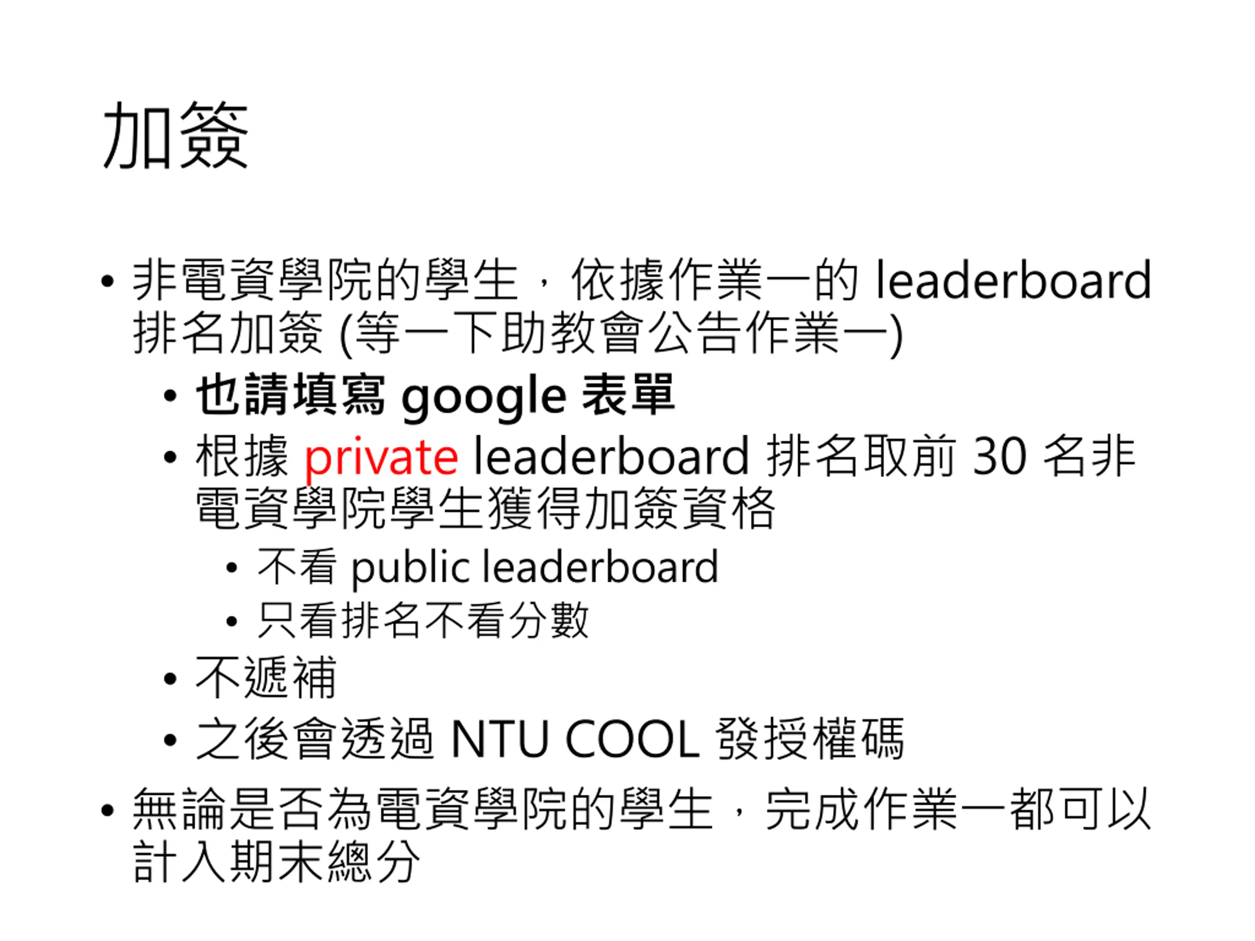 leaderboard ( ) google private leaderboard 30 public leaderboard NTU COOL