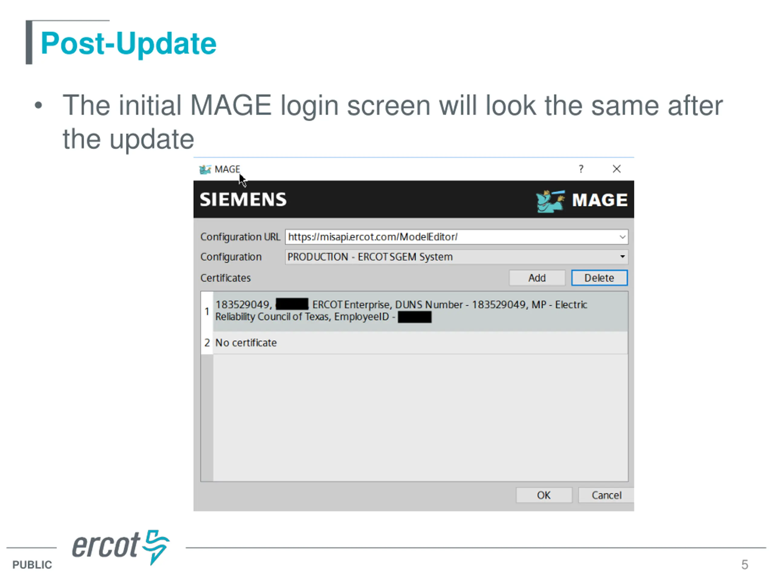 Post-Update The initial MAGE login screen will look the same after the update 5 PUBLIC