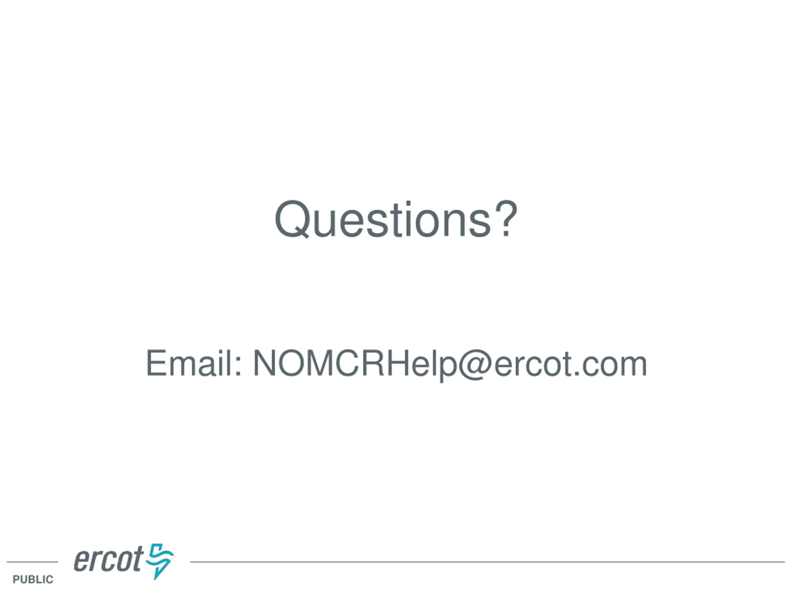 Questions? Email: NOMCRHelp@ercot.com PUBLIC