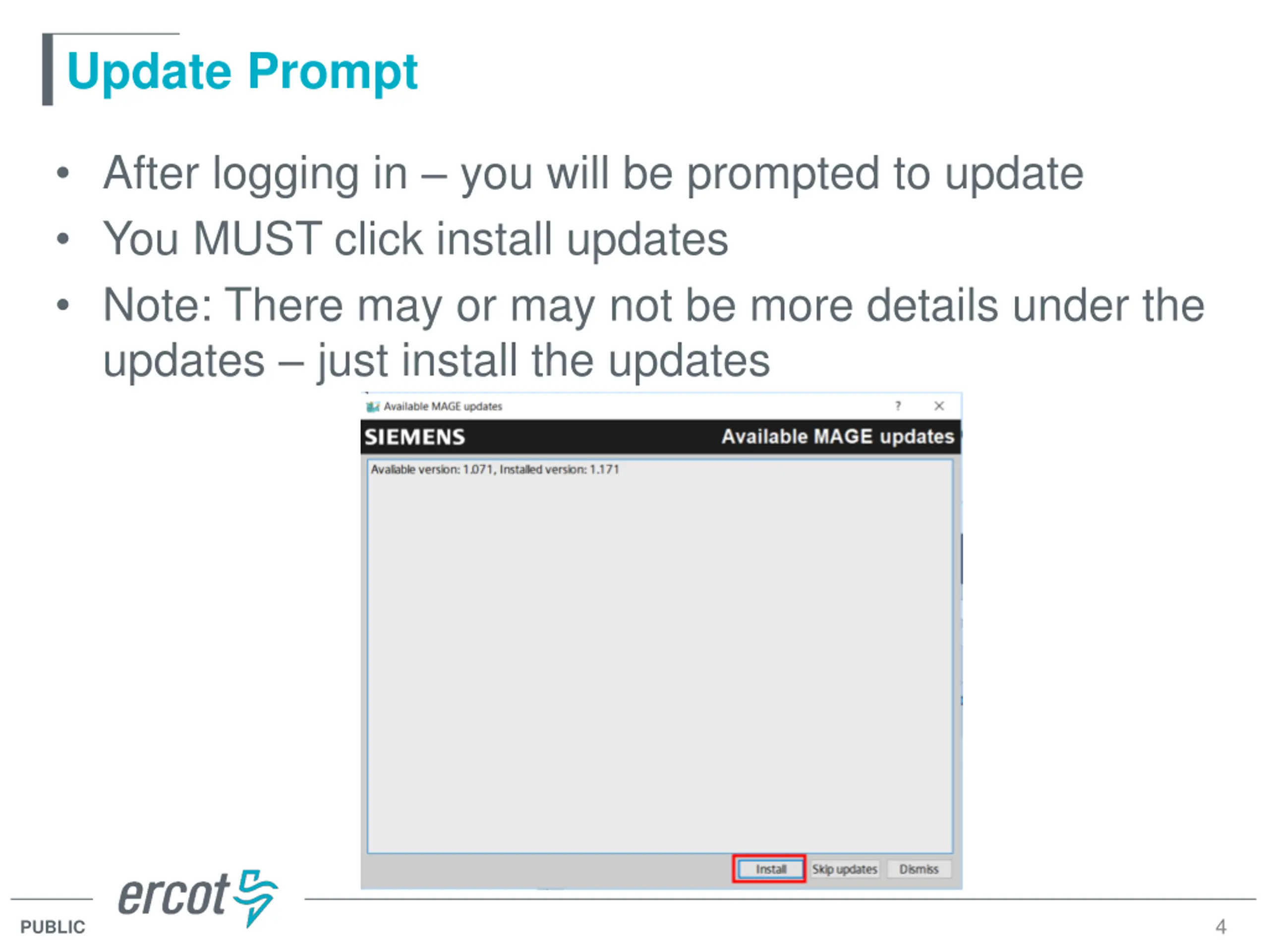 Initial Login MAGE will look the same prior to updating 3 PUBLIC