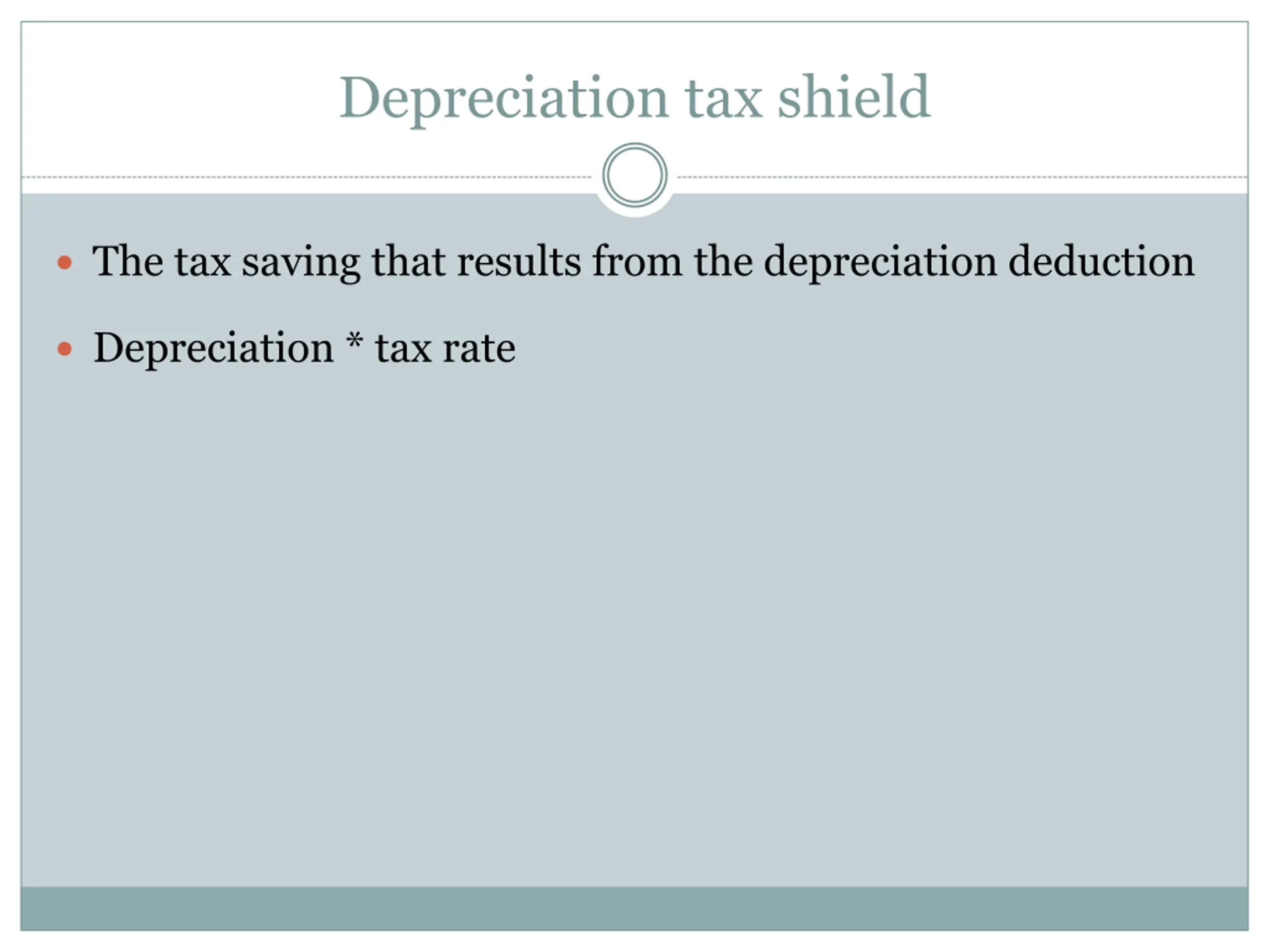 Depreciation tax shield The tax saving that results from the depreciation deduction Depreciation * tax rate