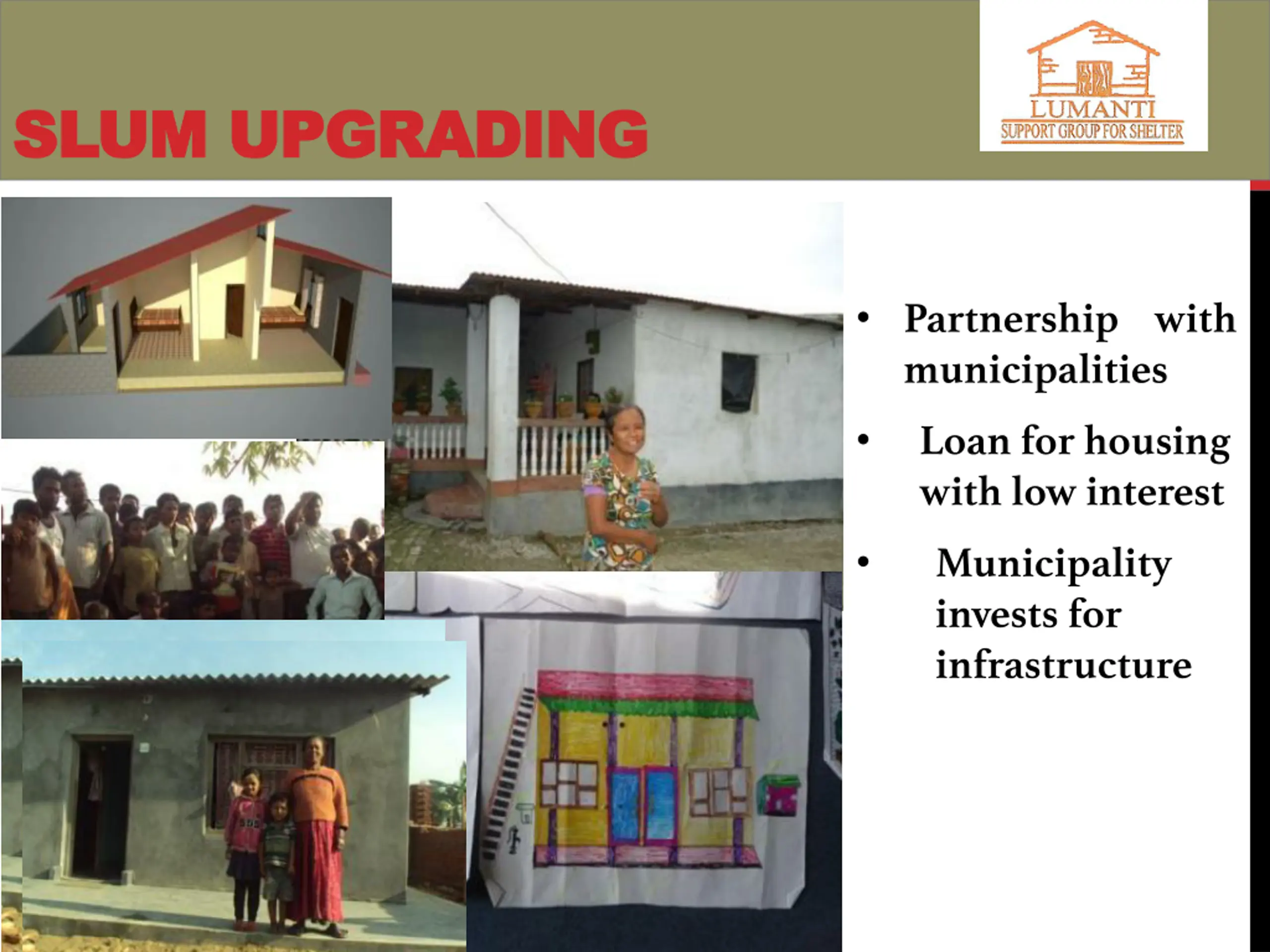 SLUM UPGRADING SLUM UPGRADING Partnership with municipalities Loan for housing with low interest Municipality invests for infrastructure