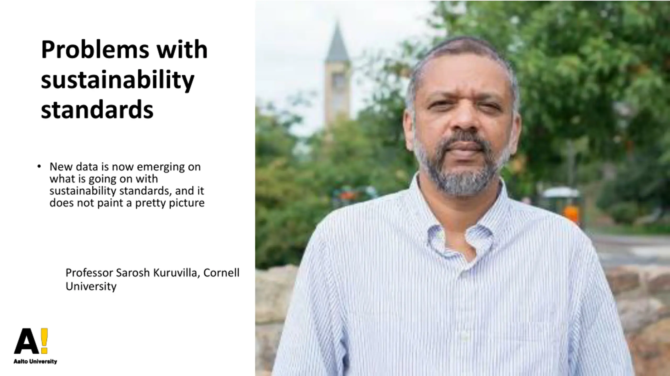 Problems with sustainability standards New data is now emerging on what is going on with sustainability standards, and it does not paint a pretty picture Professor Sarosh Kuruvilla, Cornell University