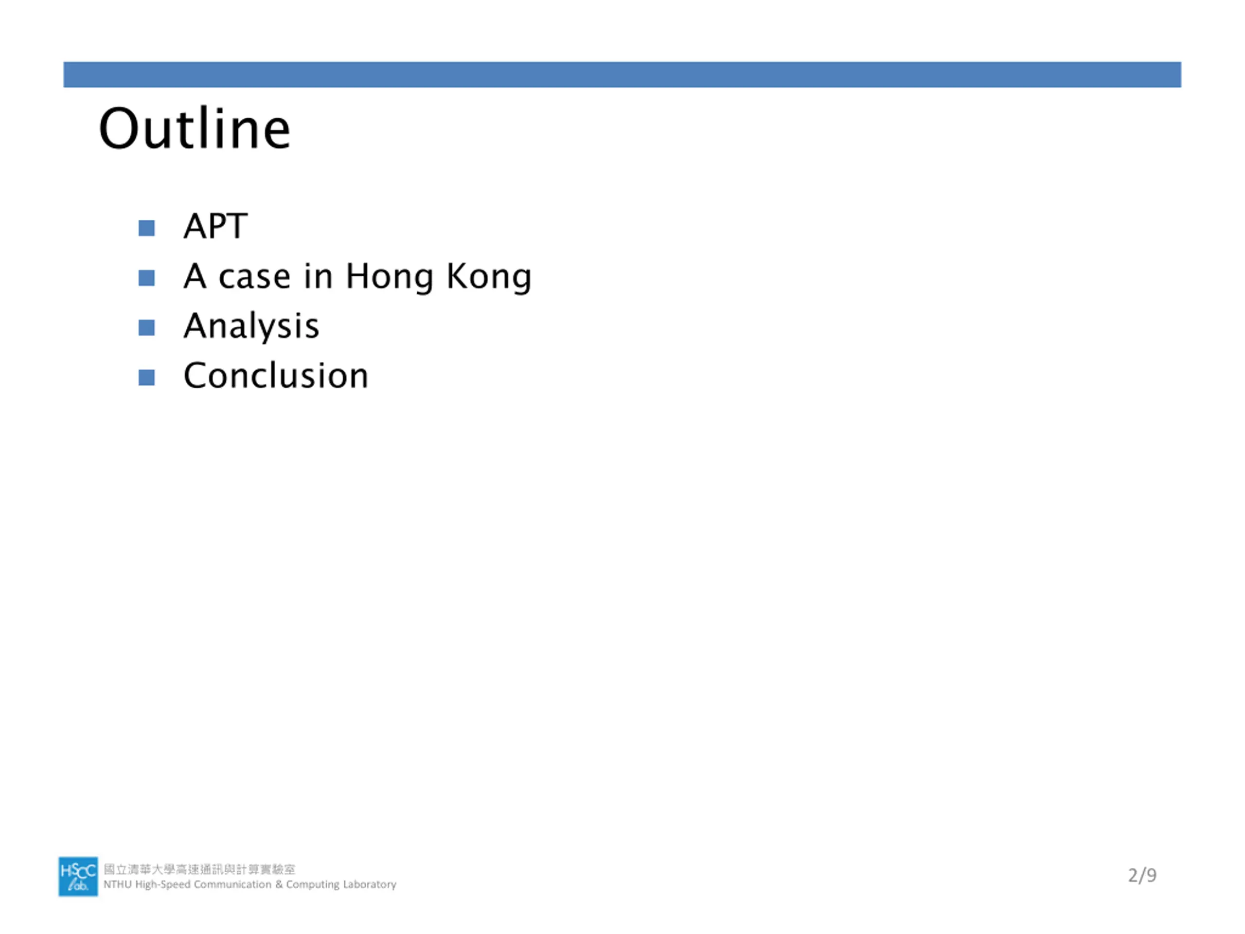 Outline APT A case in Hong Kong Analysis Conclusion NTHU High-Speed Communication & Computing Laboratory 2/9