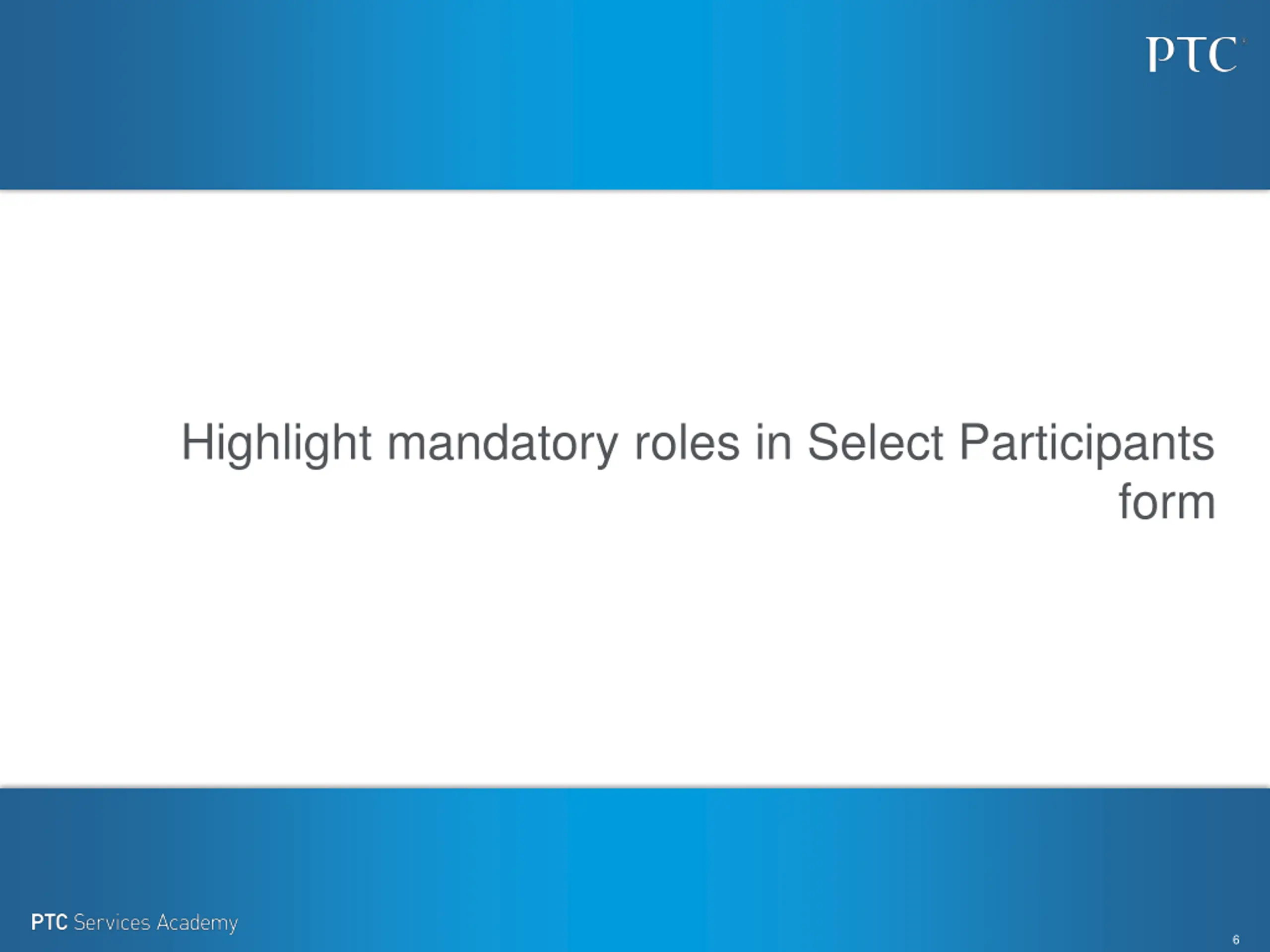 Handle mandatory roles in Select Participants Fabrice QUICOT Solution Architect, PTC Toulouse January 02, 2014