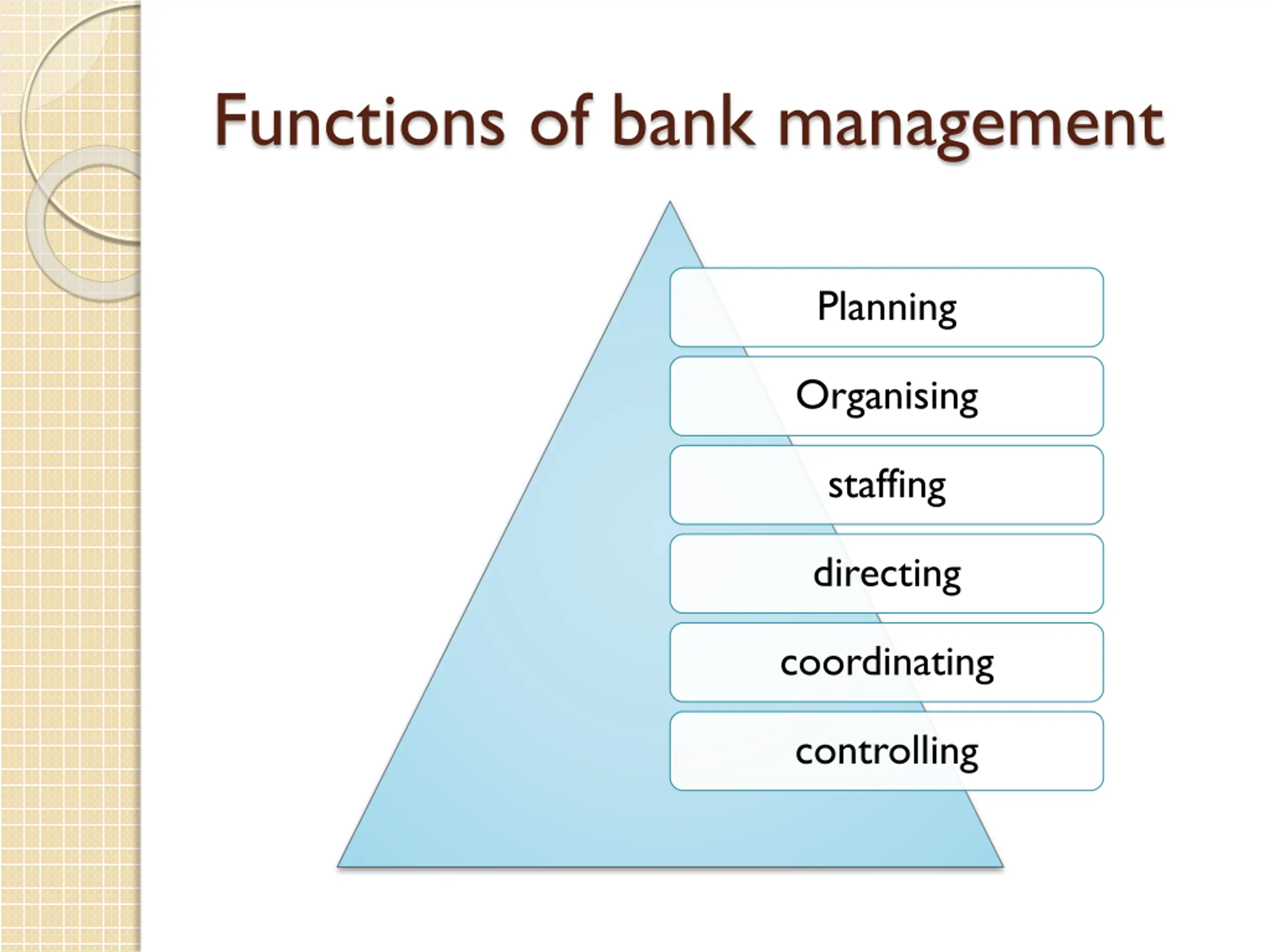 Functions of bank management Planning Organising staffing directing coordinating controlling