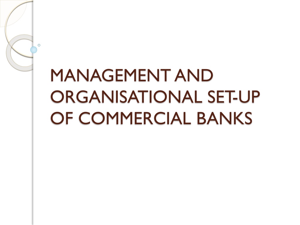 MANAGEMENT AND ORGANISATIONAL SET-UP OF COMMERCIAL BANKS