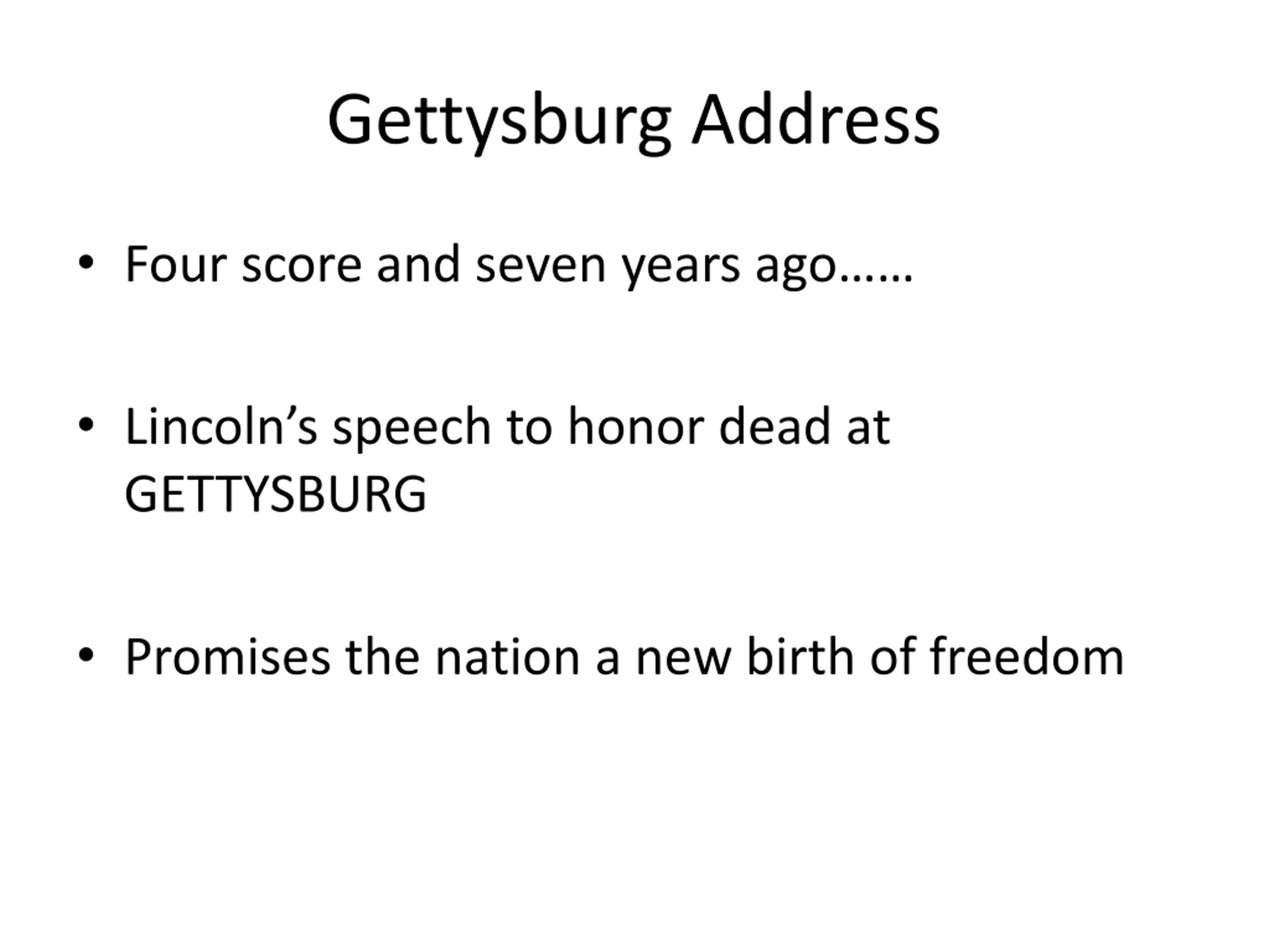 Gettysburg Address Four score and seven years ago Lincoln s speech to honor dead at GETTYSBURG Promises the nation a new birth of freedom