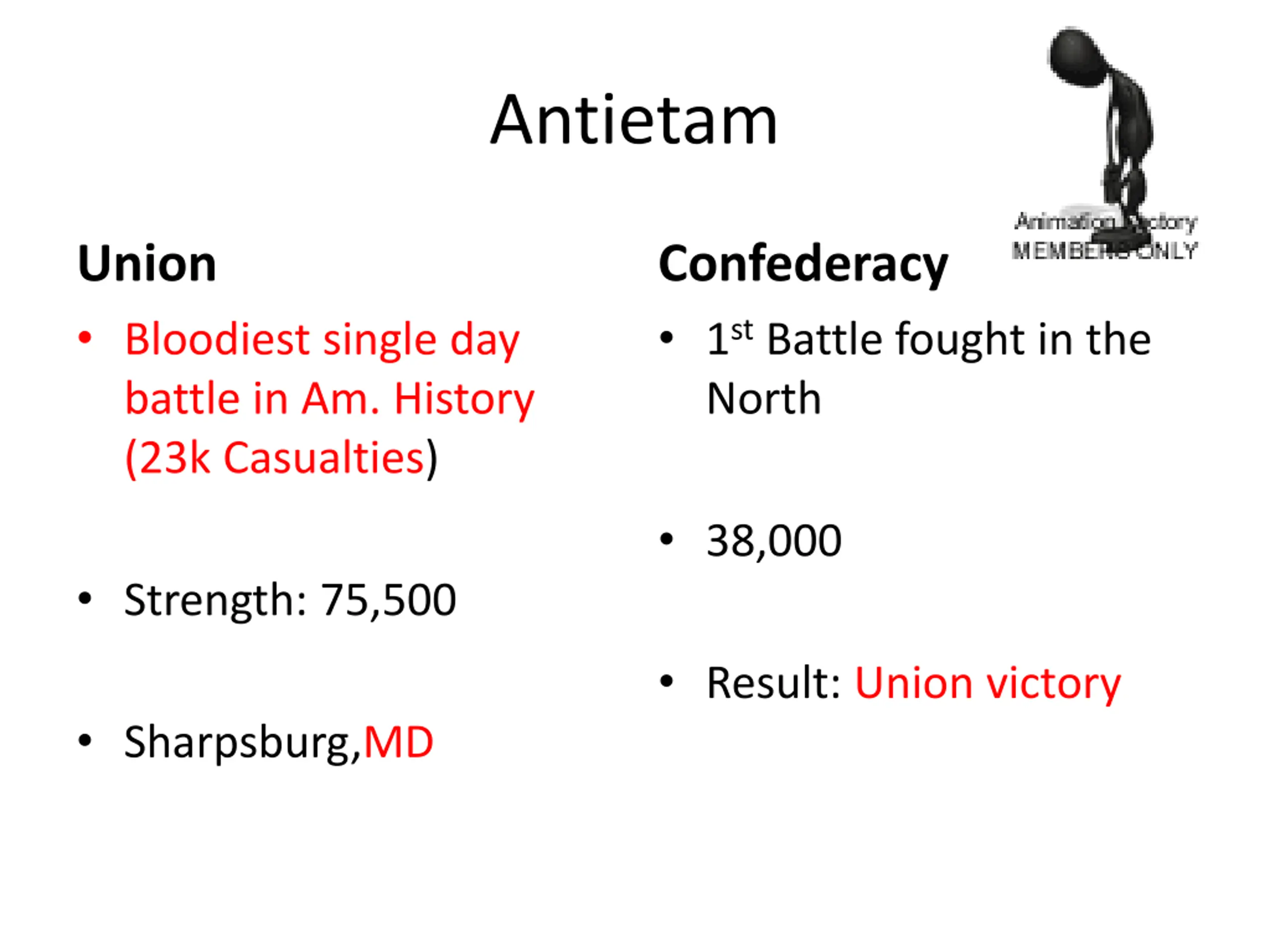 Sad stick man looking down Animated Clipart Antietam Union Bloodiest single day battle in Am. History (23k Casualties) Confederacy 1stBattle fought in the North 38,000 Strength: 75,500 Result: Union victory Sharpsburg,MD