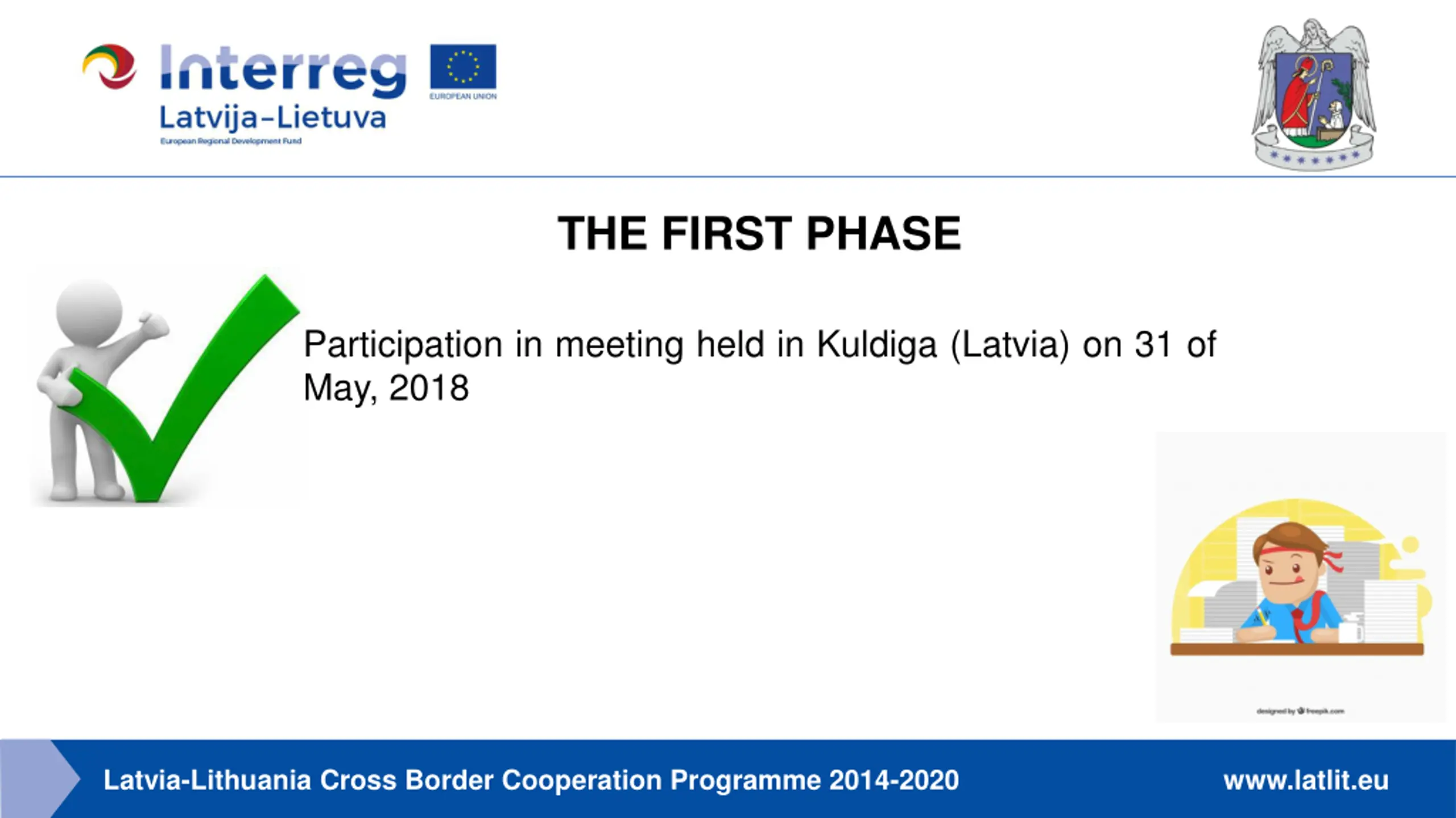 THE FIRST PHASE Participation in meeting held in Kuldiga (Latvia) on 31 of May, 2018 Latvia-Lithuania Cross Border Cooperation Programme 2014-2020 www.latlit.eu