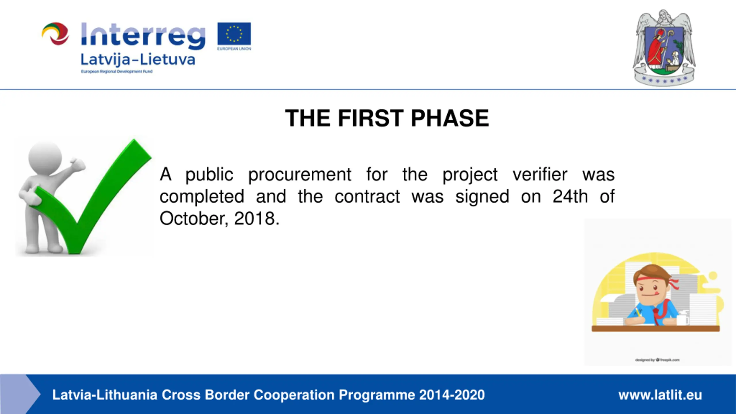 THE FIRST PHASE A public procurement for the project verifier was completed and the contract was signed on 24th of October, 2018. Latvia-Lithuania Cross Border Cooperation Programme 2014-2020 www.latlit.eu