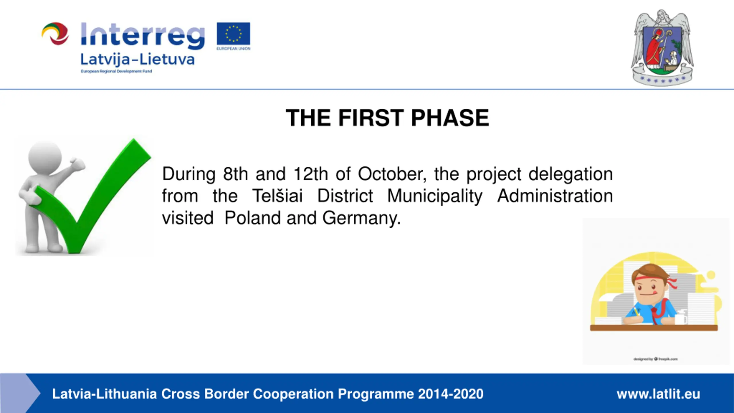 THE FIRST PHASE During 8th and 12th of October, the project delegation from the Tel iai District Municipality Administration visited Poland and Germany. Latvia-Lithuania Cross Border Cooperation Programme 2014-2020 www.latlit.eu