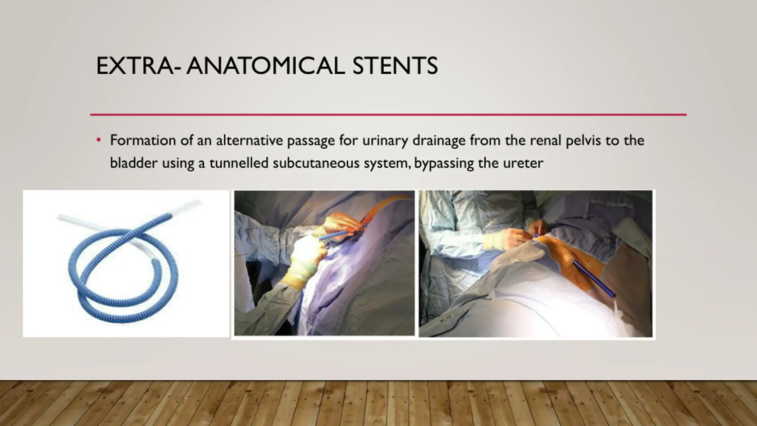 EXTRA- ANATOMICAL STENTS Formation of an alternative passage for urinary drainage from the renal pelvis to the bladder using a tunnelled subcutaneous system, bypassing the ureter