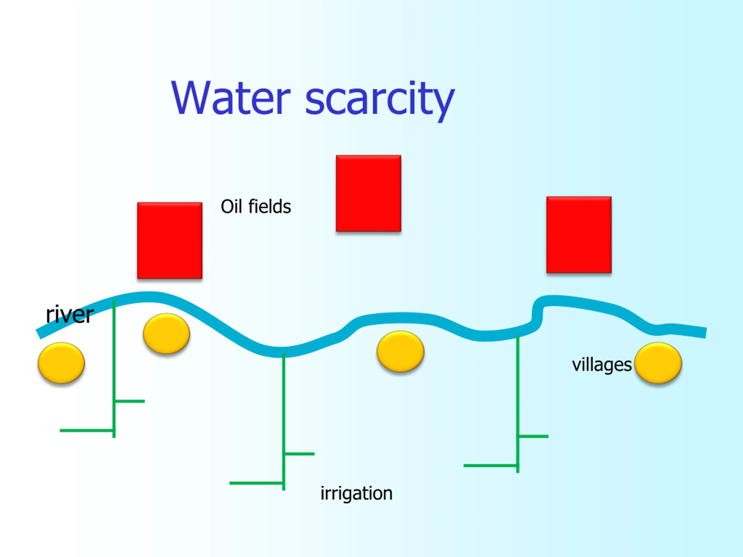 Water scarcity Oil fields river villages irrigation
