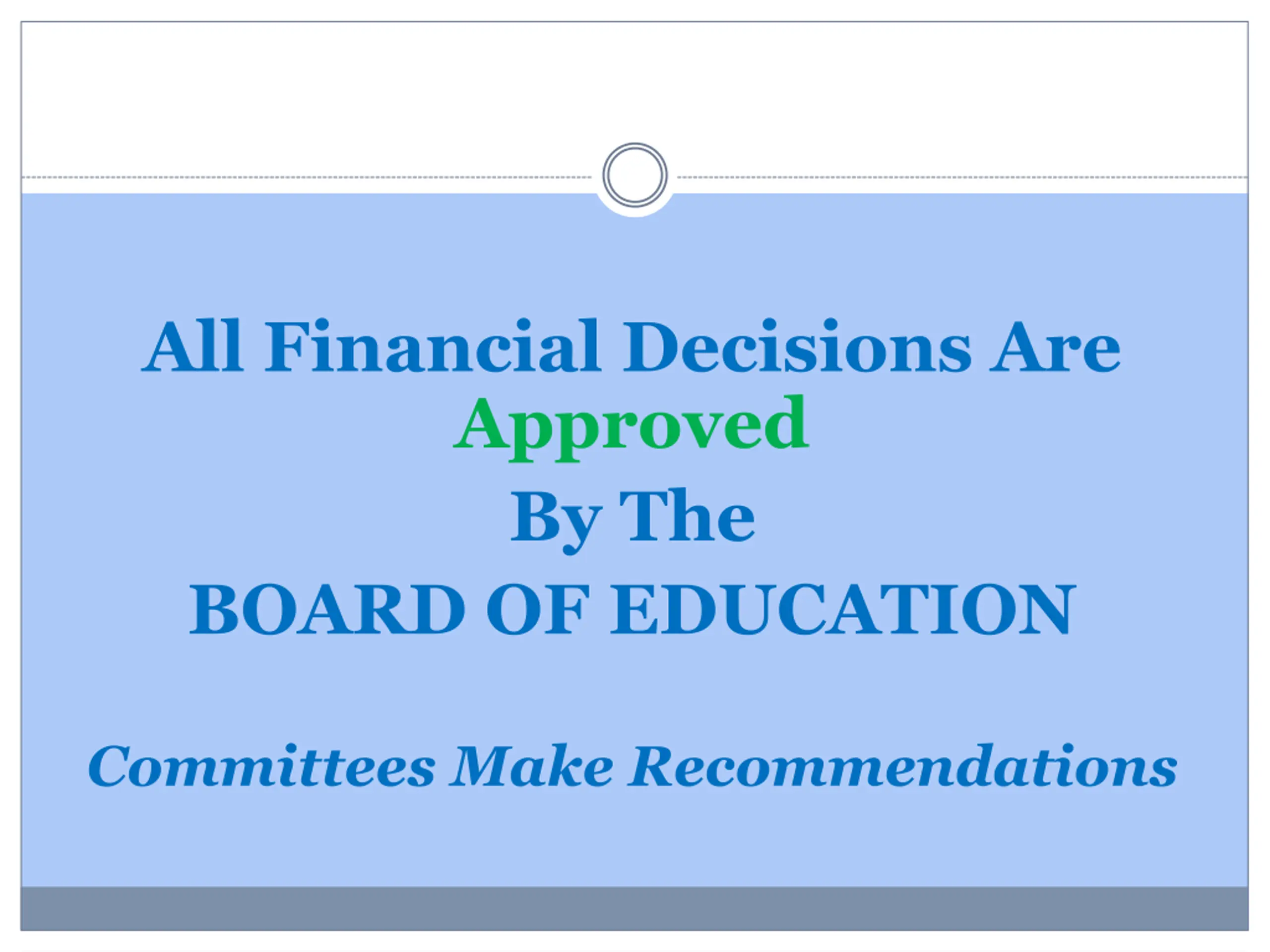 All Financial Decisions Are Approved By The BOARD OF EDUCATION Committees Make Recommendations