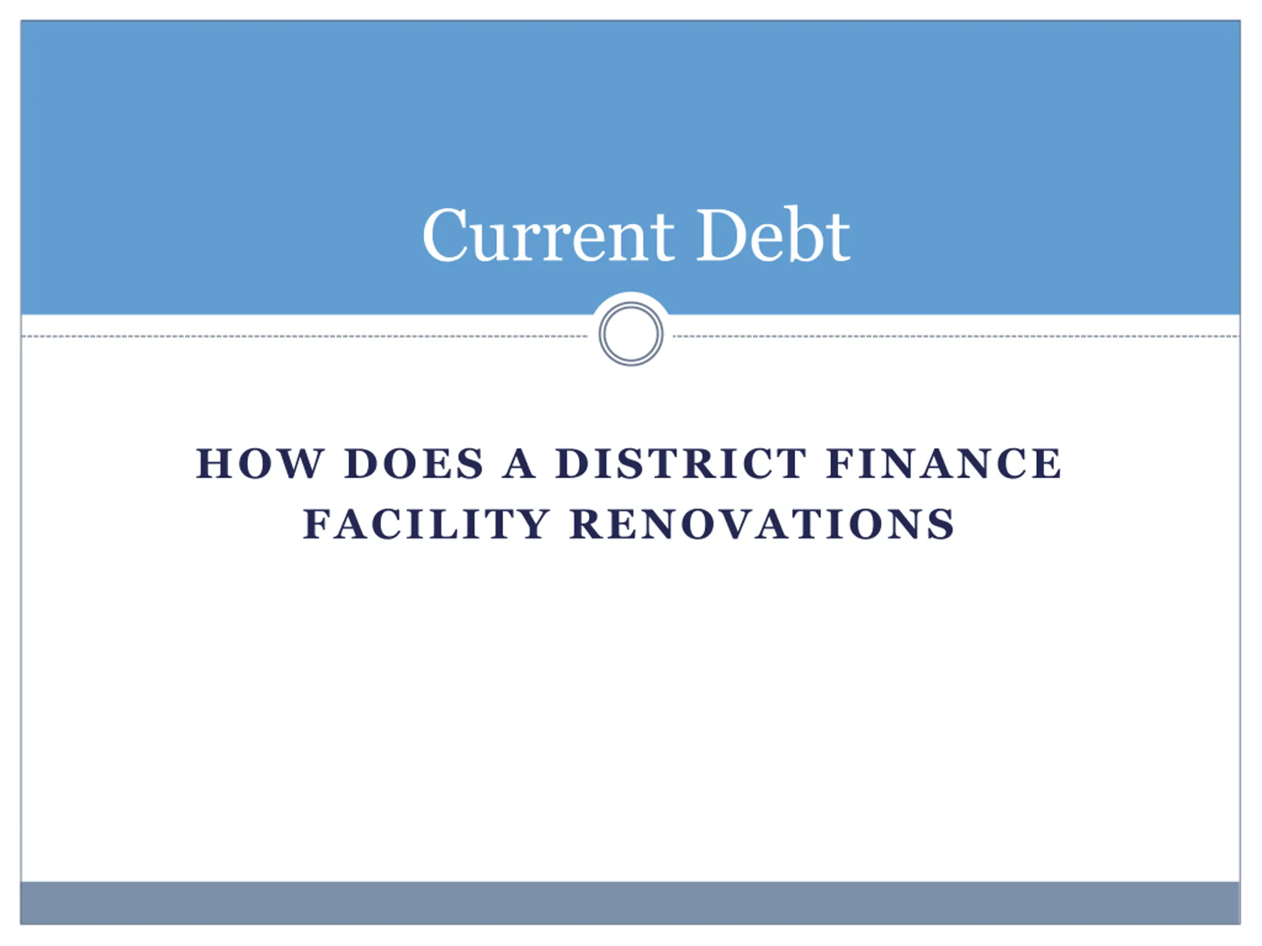 Current Debt HOW DOES A DISTRICT FINANCE FACILITY RENOVATIONS