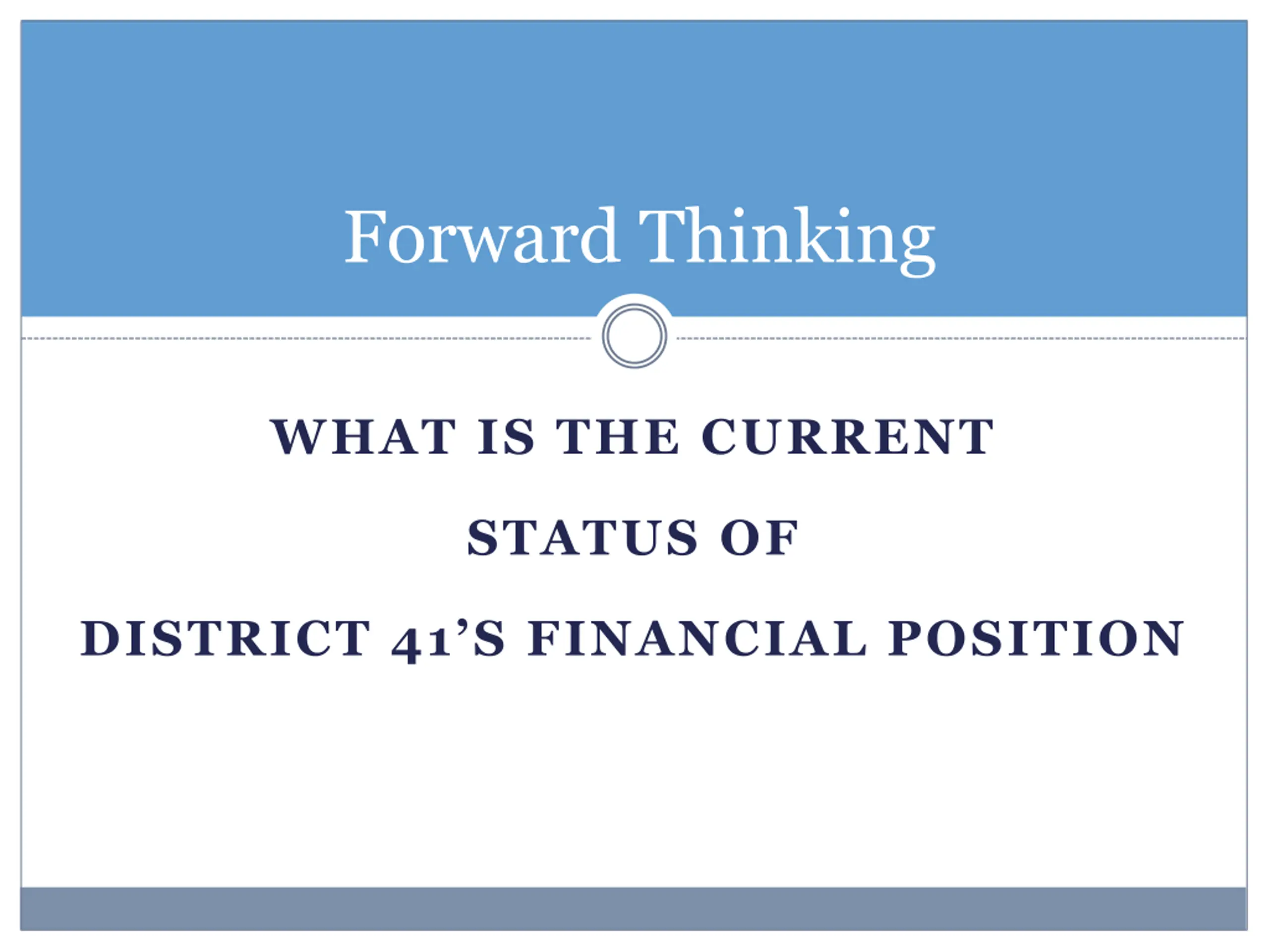 Forward Thinking WHAT IS THE CURRENT STATUS OF DISTRICT 41 S FINANCIAL POSITION