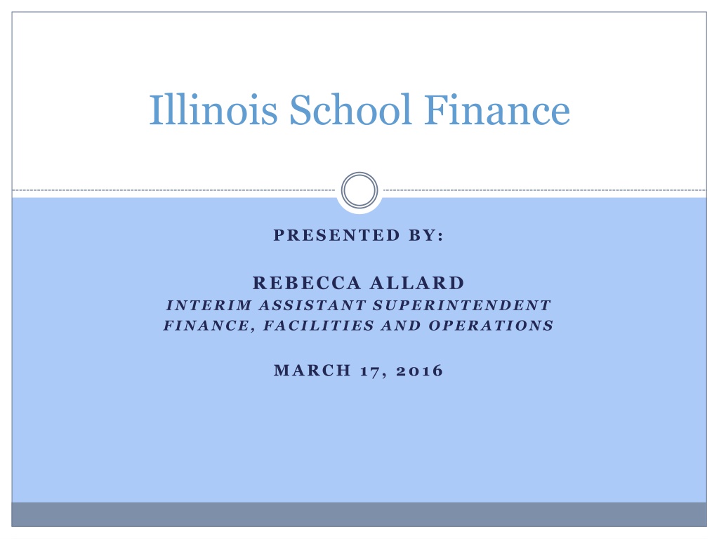 Illinois School Finance PRESENTED BY: REBECCA ALLARD INTERIM ASSISTANT SUPERINTENDENT FINANCE, FACILITIES AND OPERATIONS MARCH 17, 2016