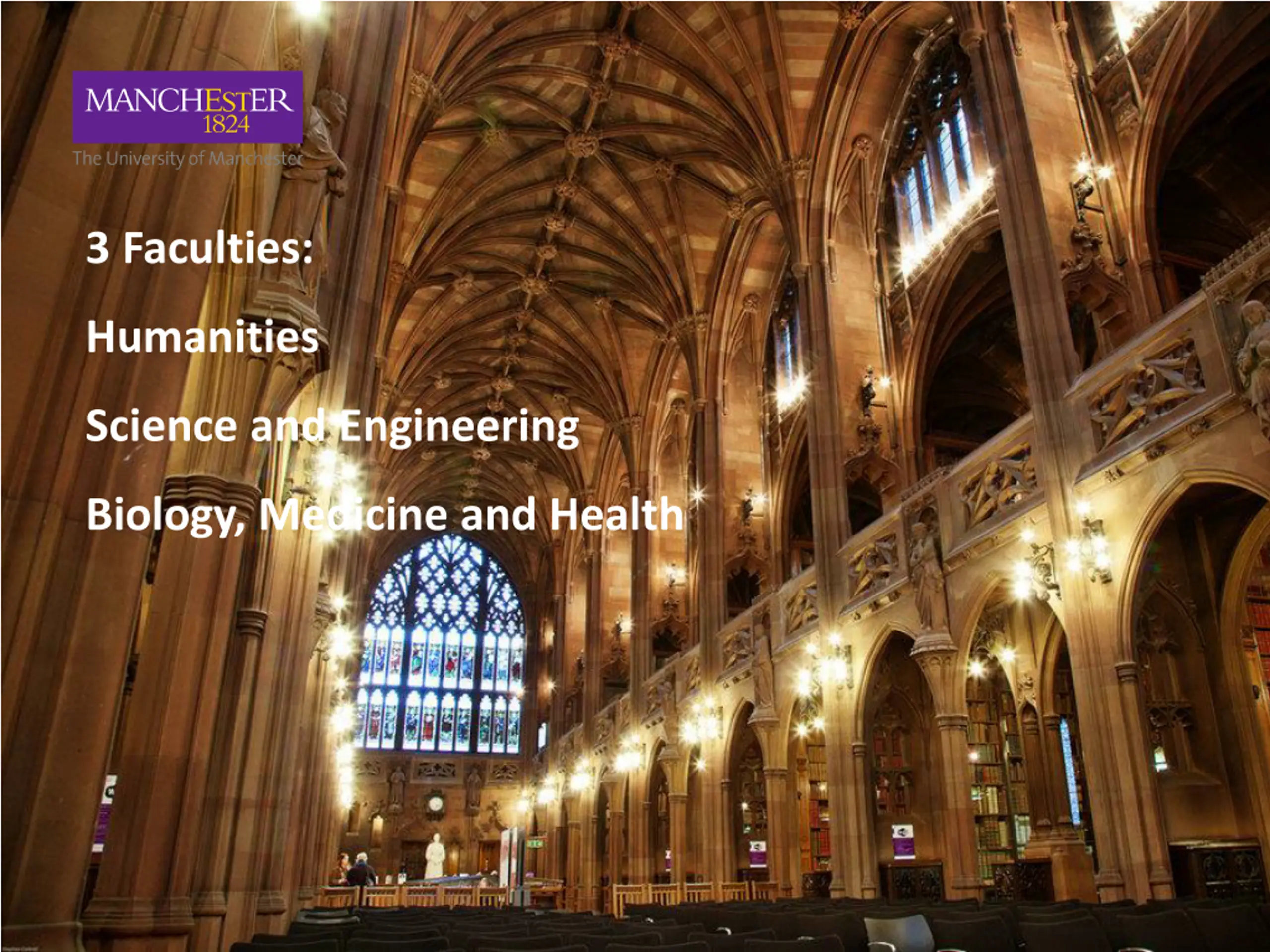 3 Faculties: Humanities Science and Engineering Biology, Medicine and Health