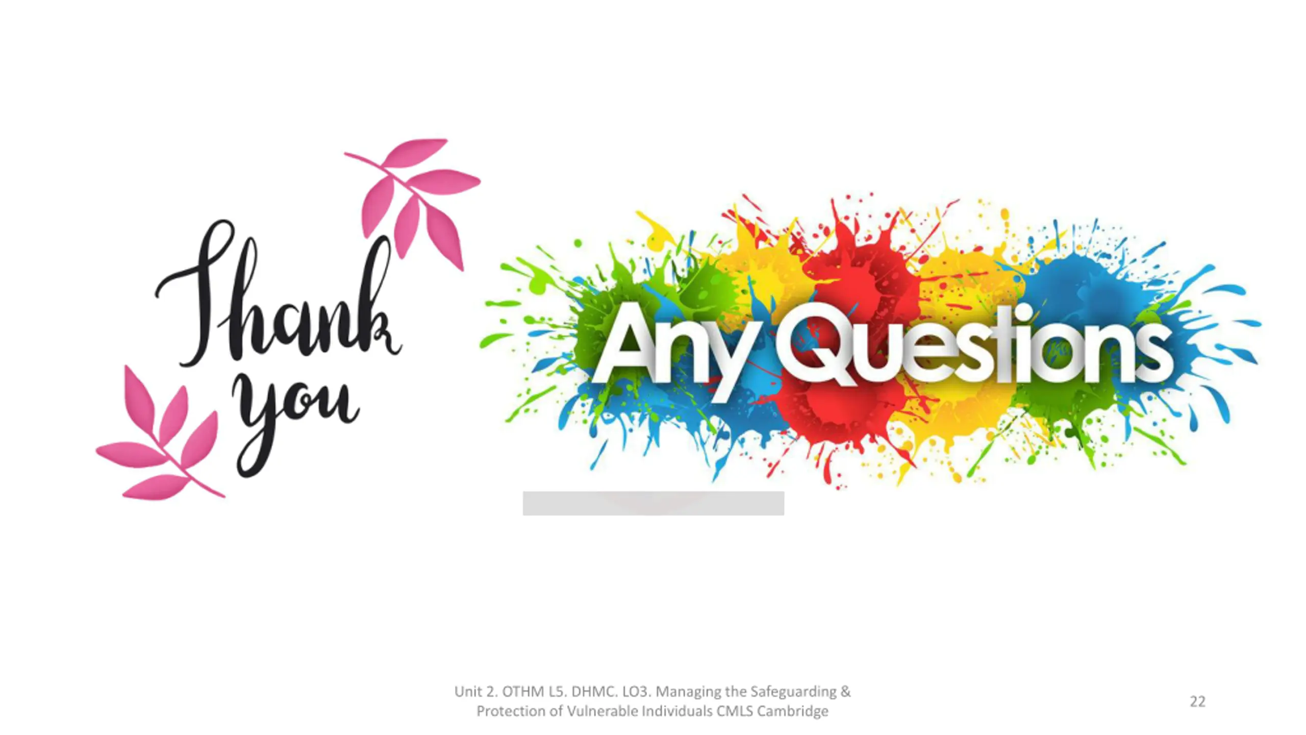 Unit 2. OTHM L5. DHMC. LO3. Managing the Safeguarding & Protection of Vulnerable Individuals CMLS Cambridge 22