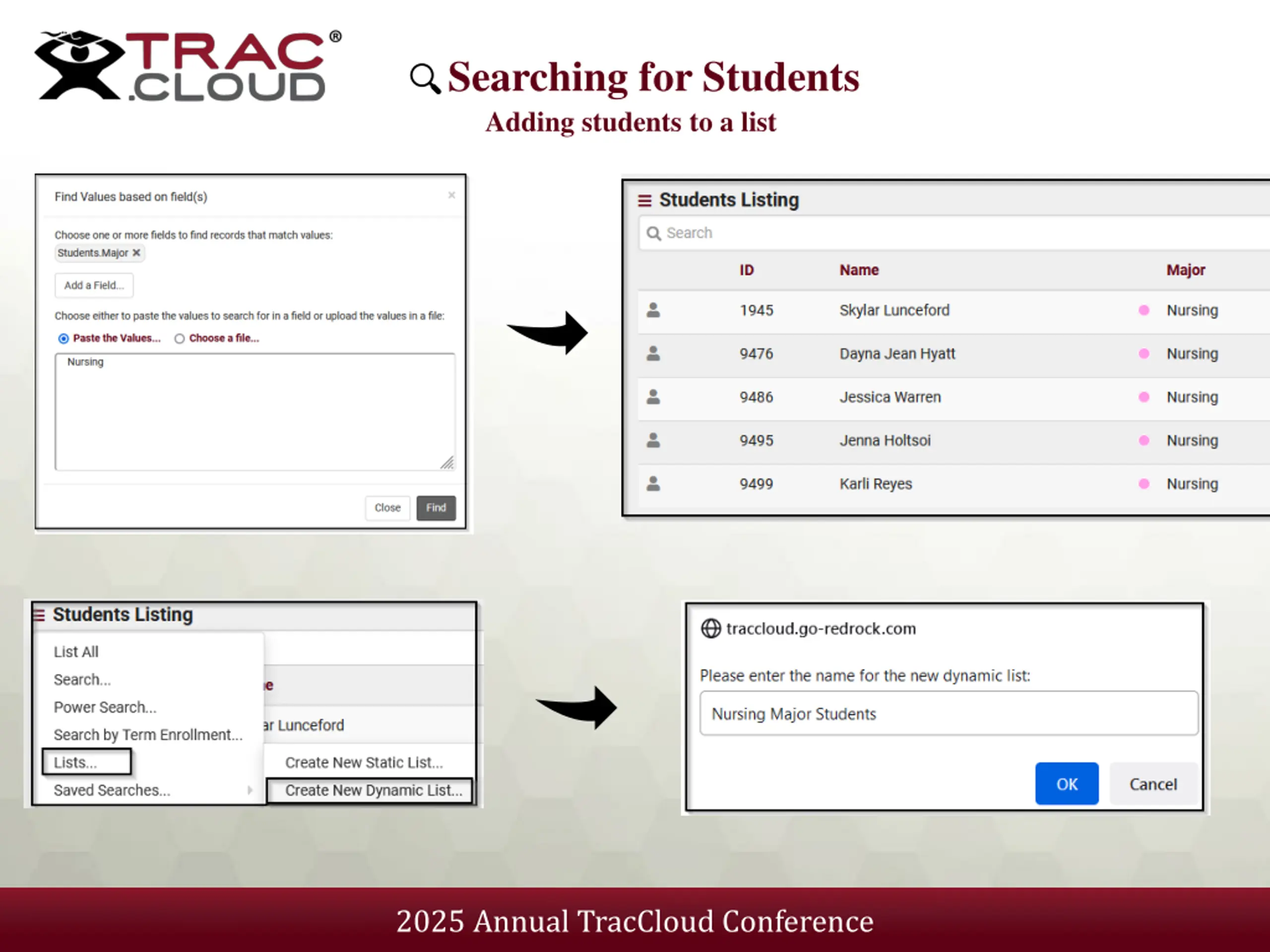 Searching for Students Adding students to a list 2025 Annual TracCloud Conference 2025 Annual TracCloud Conference