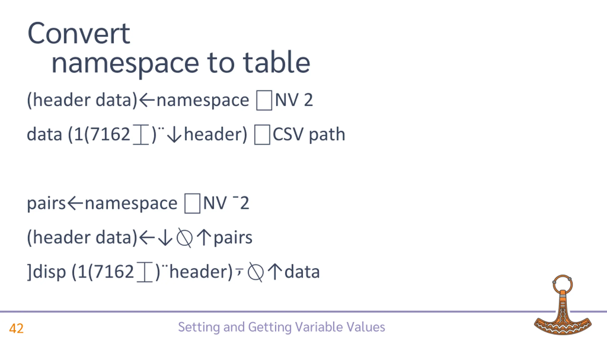 Convert table to namespace (data header) CSV path 4 1 namespace NS ( 0(7162 ) header) ( data) (data header) CSV( OPT'Invert' 2) path 4 1 namespace NS ( 0(7162 ) header) data Setting and Getting Variable Values 40